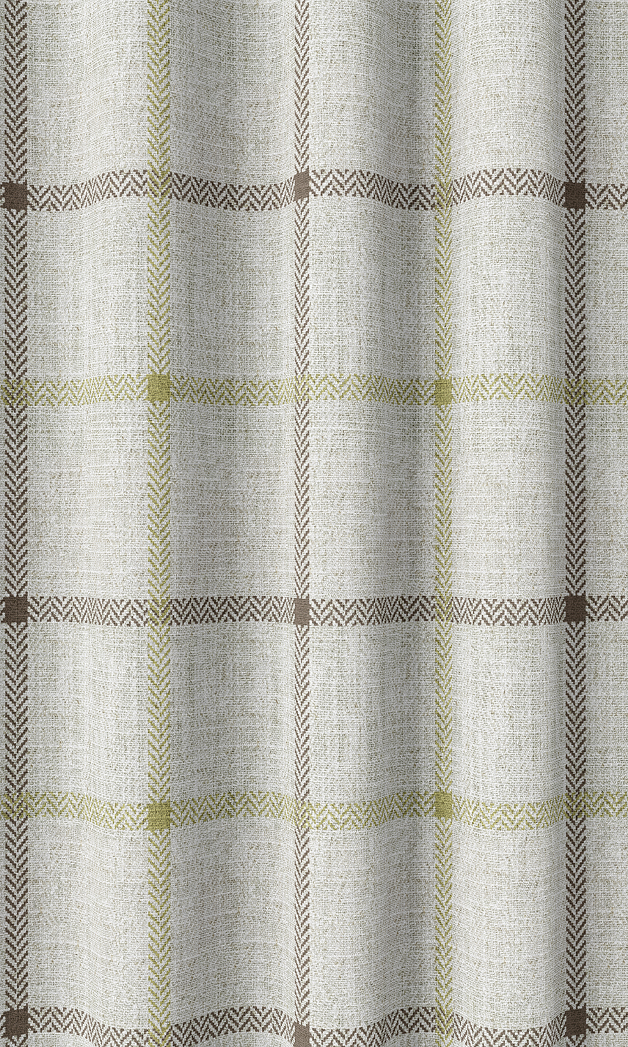 Featuring a big-block plaid pattern of apple green and brown on a crisp parchment white – hues that lend a contemporary twist to the otherwise traditional pattern. Whether you’re fashioning a mid-century modern living room or a contemporary-chic dining space, you can use this vivacious fabric for drapes and shades that never fail to impress.?