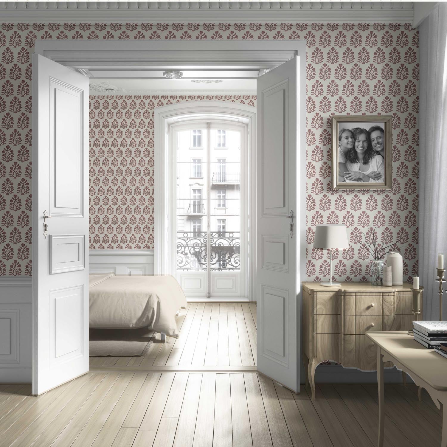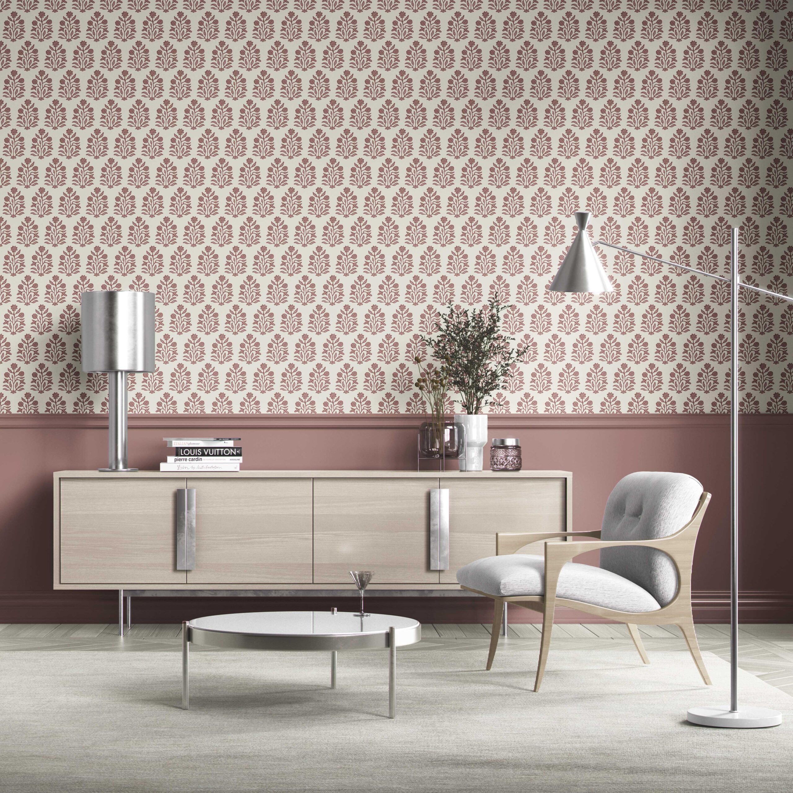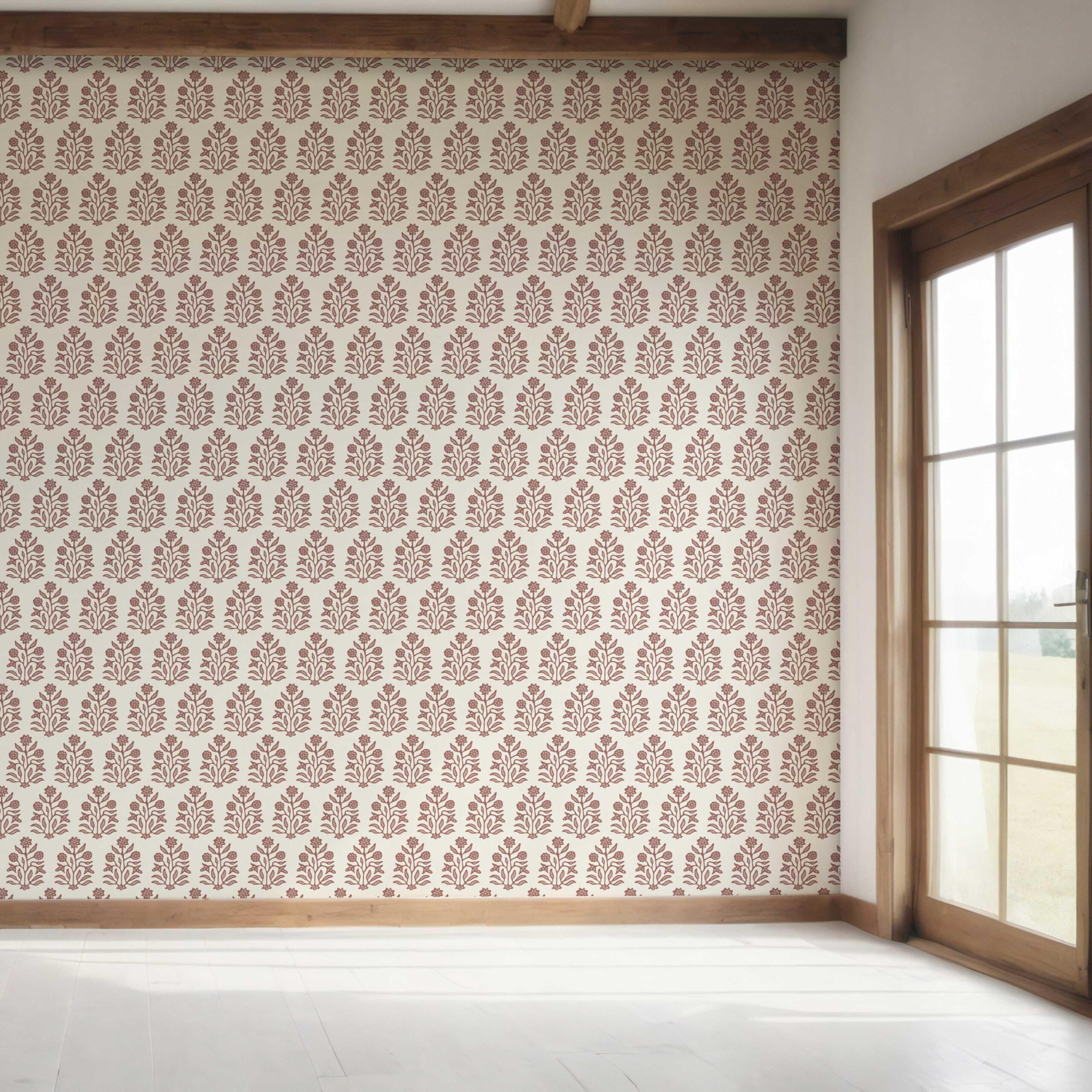 NON-PASTED: ‘Beline’ is an unpasted wallpaper installed by applying adhesive paste (not provided by us, but easy to source) to the wall. While peel-and-stick papers do not leave much room to change the paper’s position once you start applying it, the traditional, non-pasted application is more forgiving, allowing for better positioning when matching patterns.