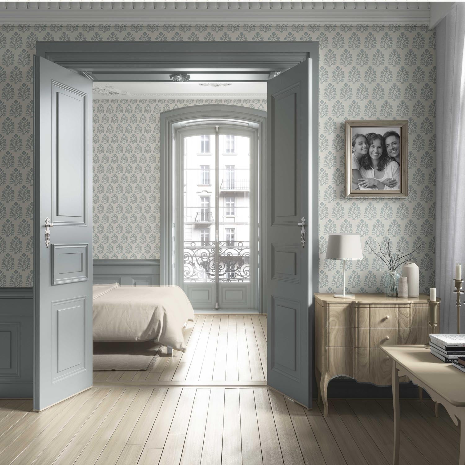 NON-PASTED: ‘Bezar’ is an unpasted wallpaper installed by applying adhesive paste (not provided by us, but easy to source) to the wall. While peel-and-stick papers do not leave much room to change the paper’s position once you start applying it, the traditional, non-pasted application is more forgiving, allowing for better positioning when matching patterns.
