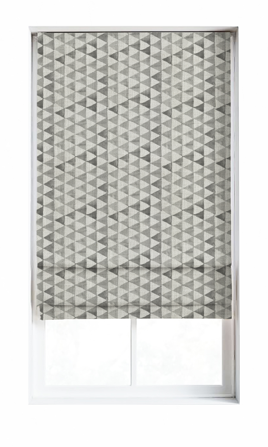 ‘Birdhouse’ Triagonal Print Custom Drapes (Eggshell White/ Grey)