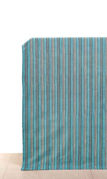 A fresh approach to color blending, this textured fabric has shades of blue, rust orange and green laced through its rich weave. Pairs well with a solids led decor acting as a colorful accent piece.