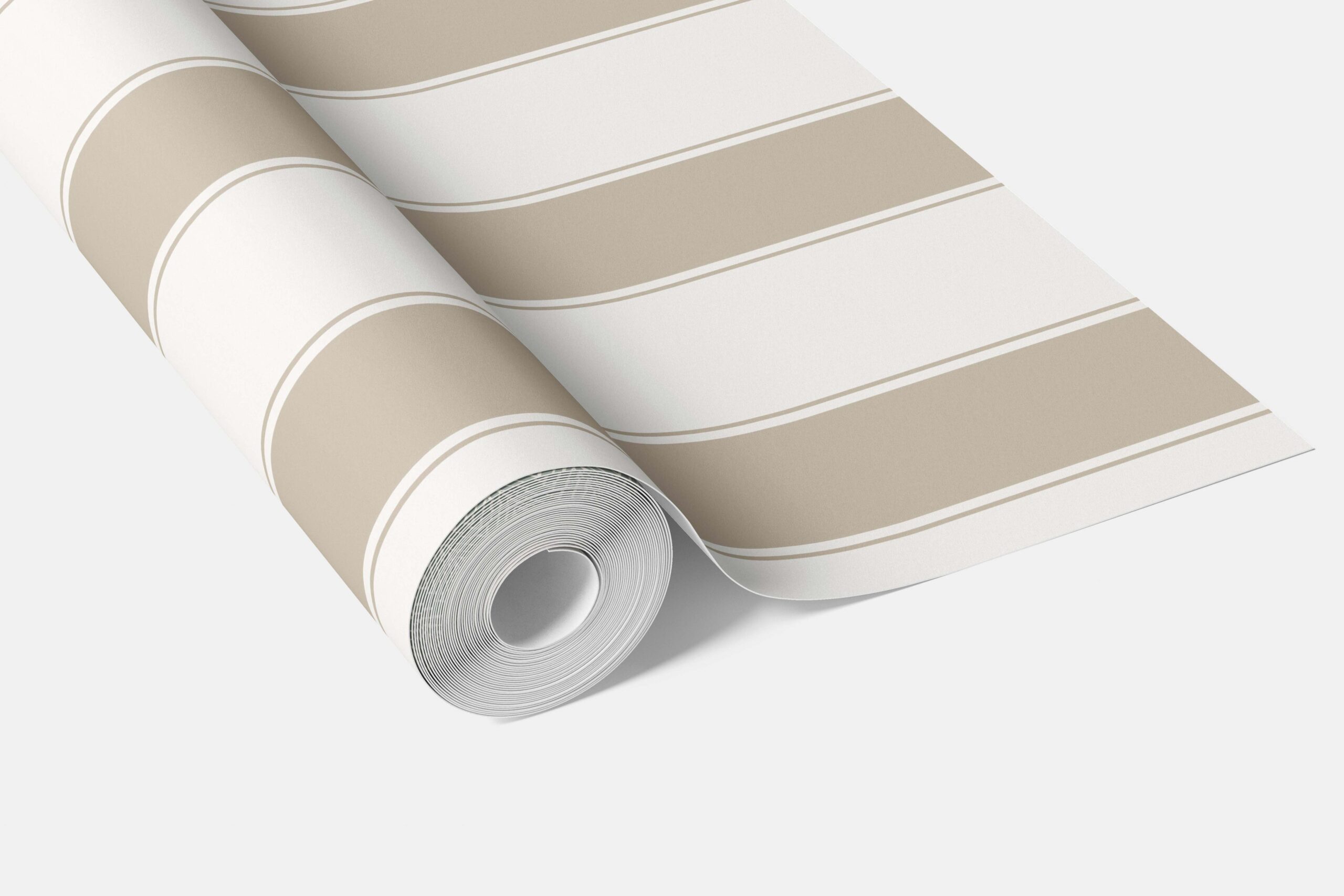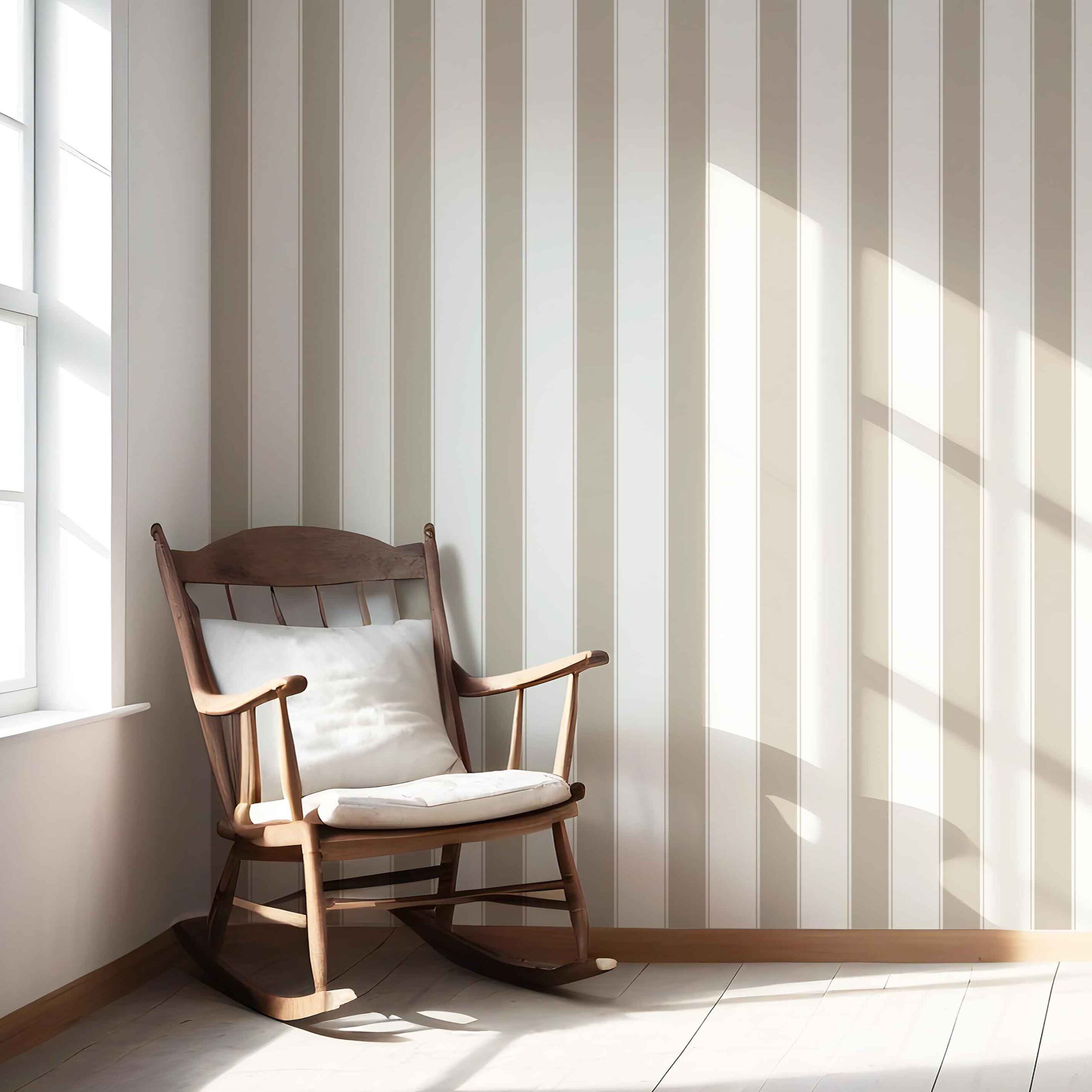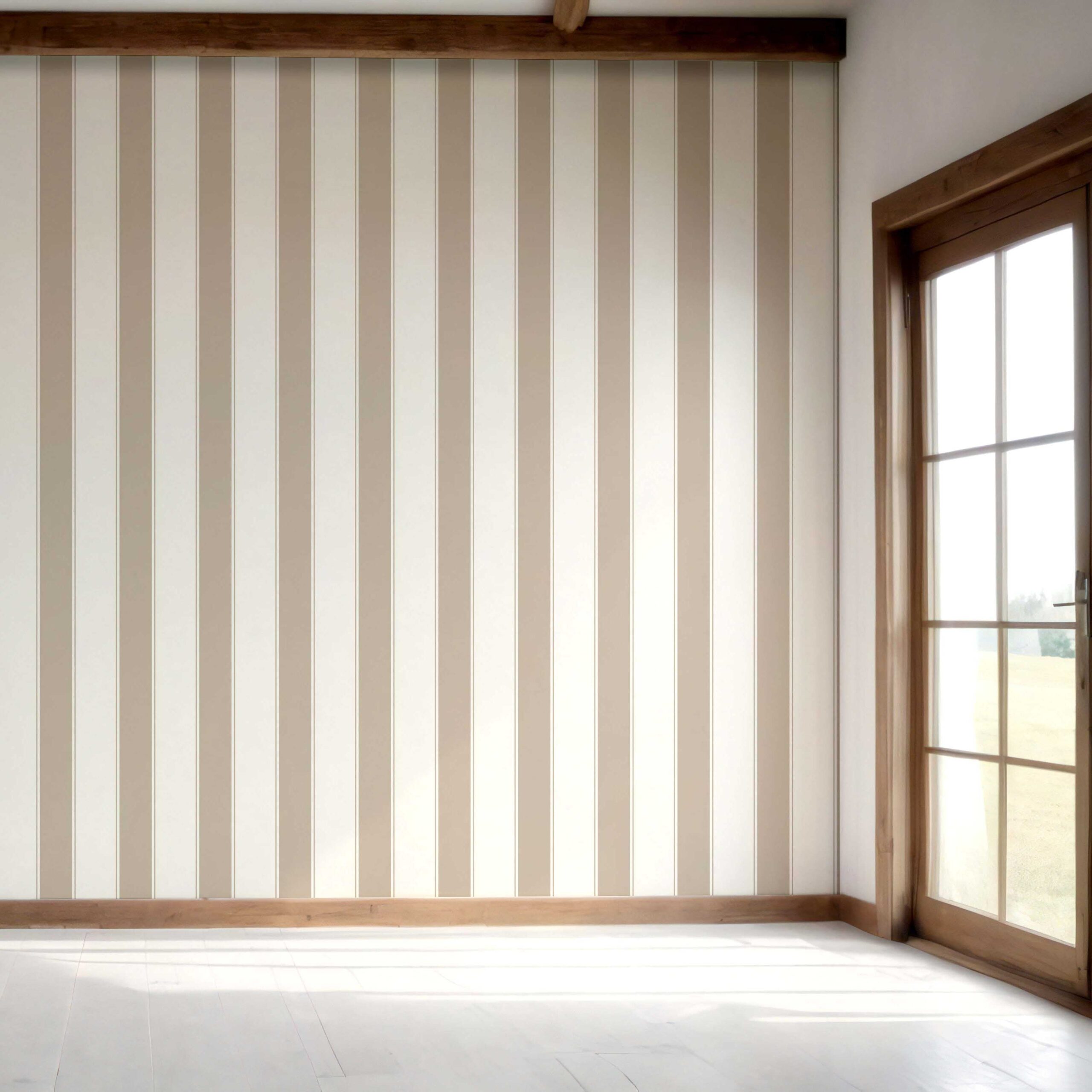 ‘Bolzano’ Neutral Geometric Striped Wallpaper (Stone Beige/ White)