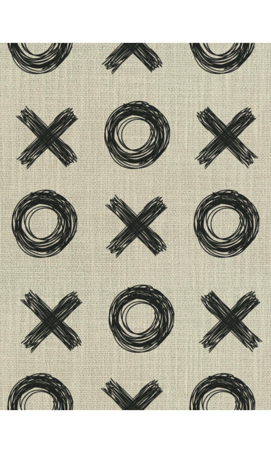 Hugs and kisses or the classic playground game–you decide with this flatweave fabric strewn with rustically wrought X’s and O’s. Each scrawled shape reflects a hint of minimalist flair, making this fabric a delightful choice for dens, bedrooms, game rooms, and more. It features neutral hues of black and white that promise pairing ease with similar shades or even bold and vibrant colors like red or green. With its upbeat ambience and a geometrical pattern, this high-quality fabric is ideally suited for our flat fold roman shades.