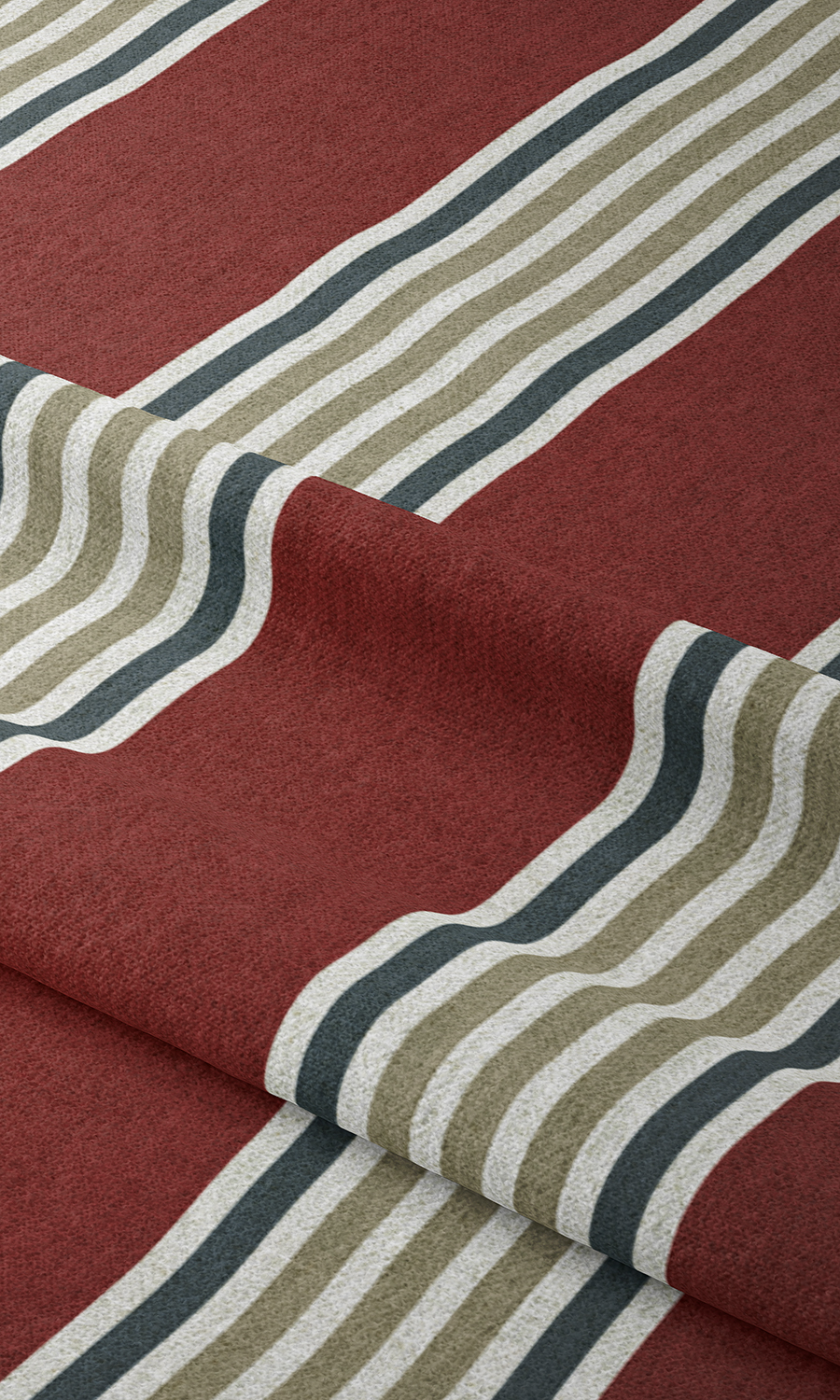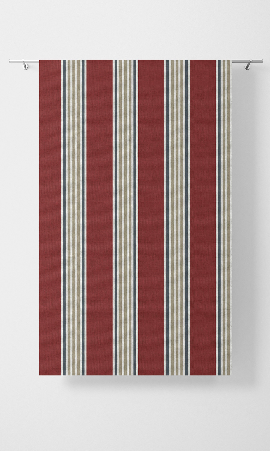 Make a bold statement in your living room or bedroom with this vibrant fabric. Featuring a repeating pattern of wide and candy stripes, Brick Medley has a rich herringbone weave base. It boasts statement hues of deep red, navy and beige that will add a pop of pizzazz to your living space, and is suited to many different decorating styles, including contemporary, transitional and mid-century modern. We recommend showcasing this fabric in flat panel roman shades and casual style drapes.?