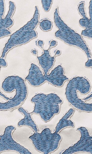 If you home design style is classic but non-fussy, opt for this beautiful embroidered fabric in teal blue and pure white. It features finely embroidered columns of vine and tendril motif in teal further defined with raised edging effect in white.