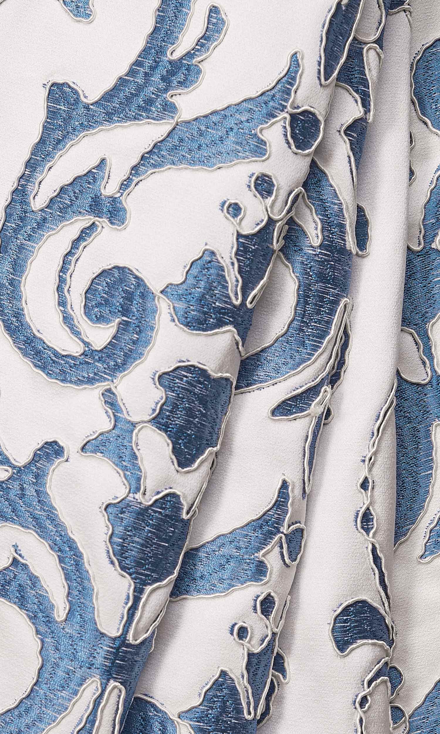 If you home design style is classic but non-fussy, opt for this beautiful embroidered fabric in teal blue and pure white. It features finely embroidered columns of vine and tendril motif in teal further defined with raised edging effect in white.