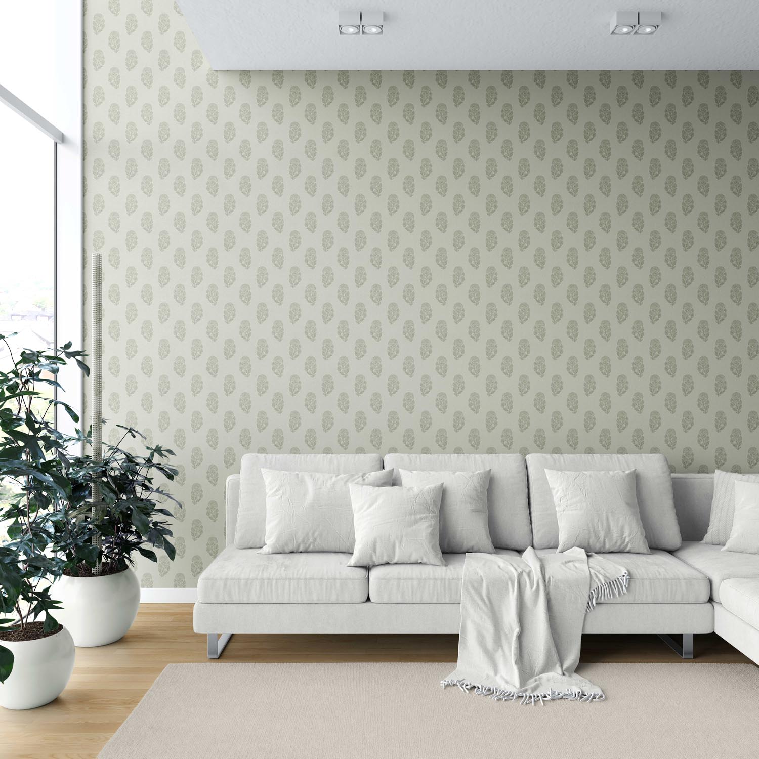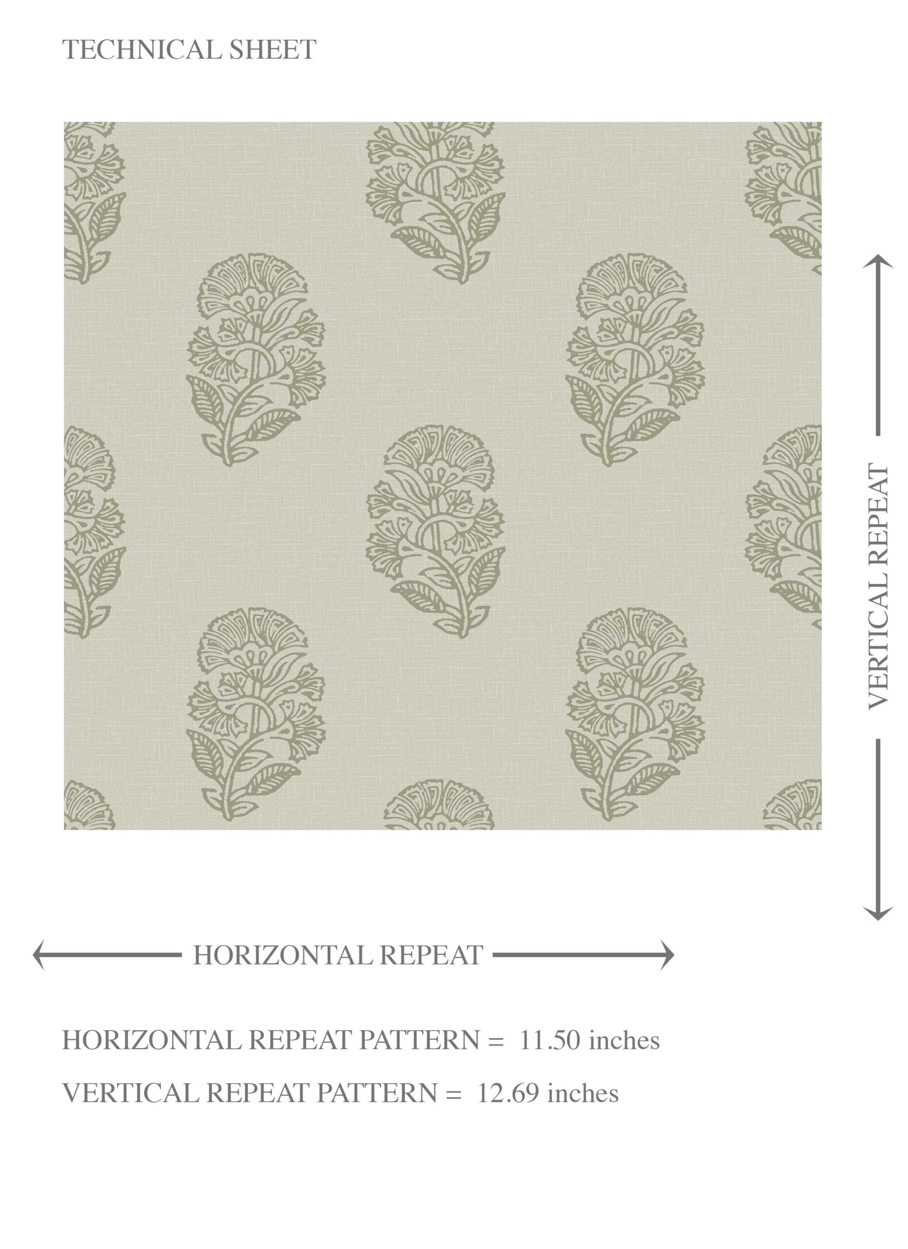 ‘Broadcloth’ Neutral Botanical/ Floral Block Print Wallpaper (Olive Gray)