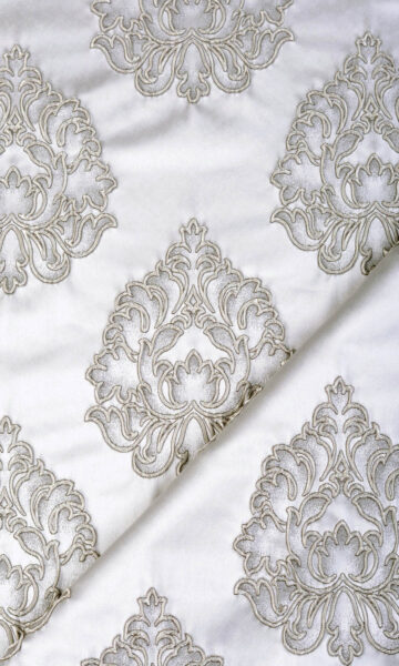 If you like old fashioned charm in your rooms, take a look at this lovely embossed and self patterned jacquard pattern in ivory and black as a drapery option. It features a classic foliage motif that looks all the more striking with its thin black edged look. To bring out the true magnificence of this fabric in your drapes, do consider getting it readied in pinched pleat type curtains.