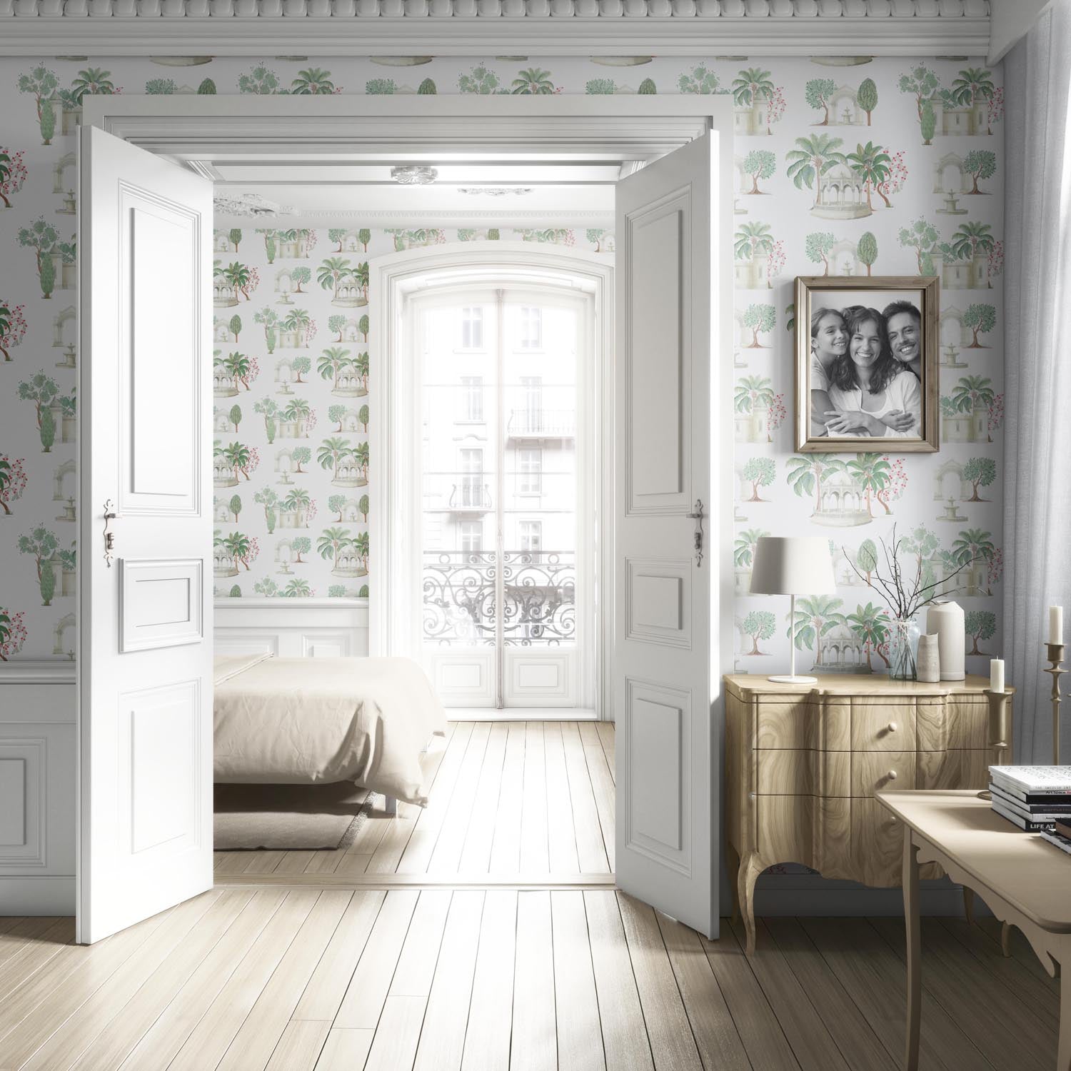 NON-PASTED: ‘Cadence’ is an unpasted wallpaper installed by applying adhesive paste (not provided by us, but easy to source) to the wall. While peel-and-stick papers do not leave much room to change the paper’s position once you start applying it, the traditional, non-pasted application is more forgiving, allowing for better positioning when matching patterns.