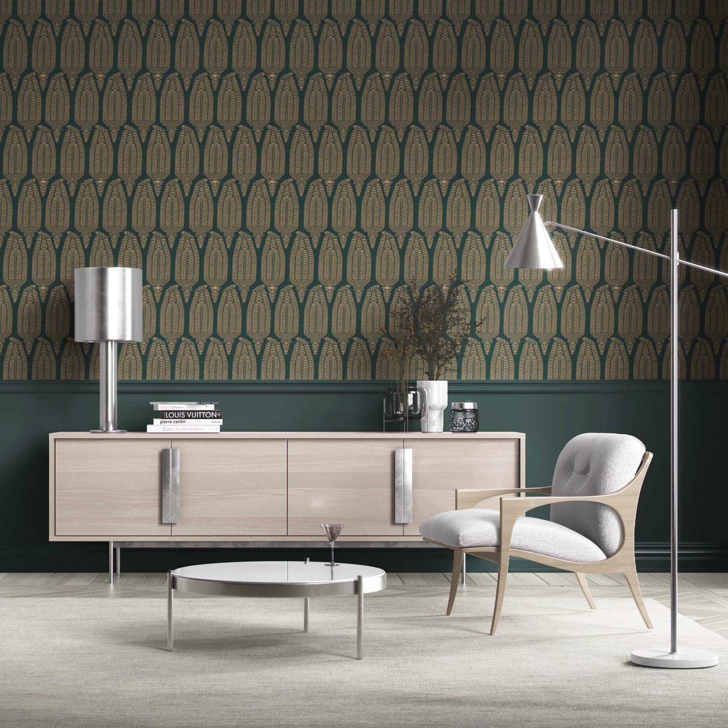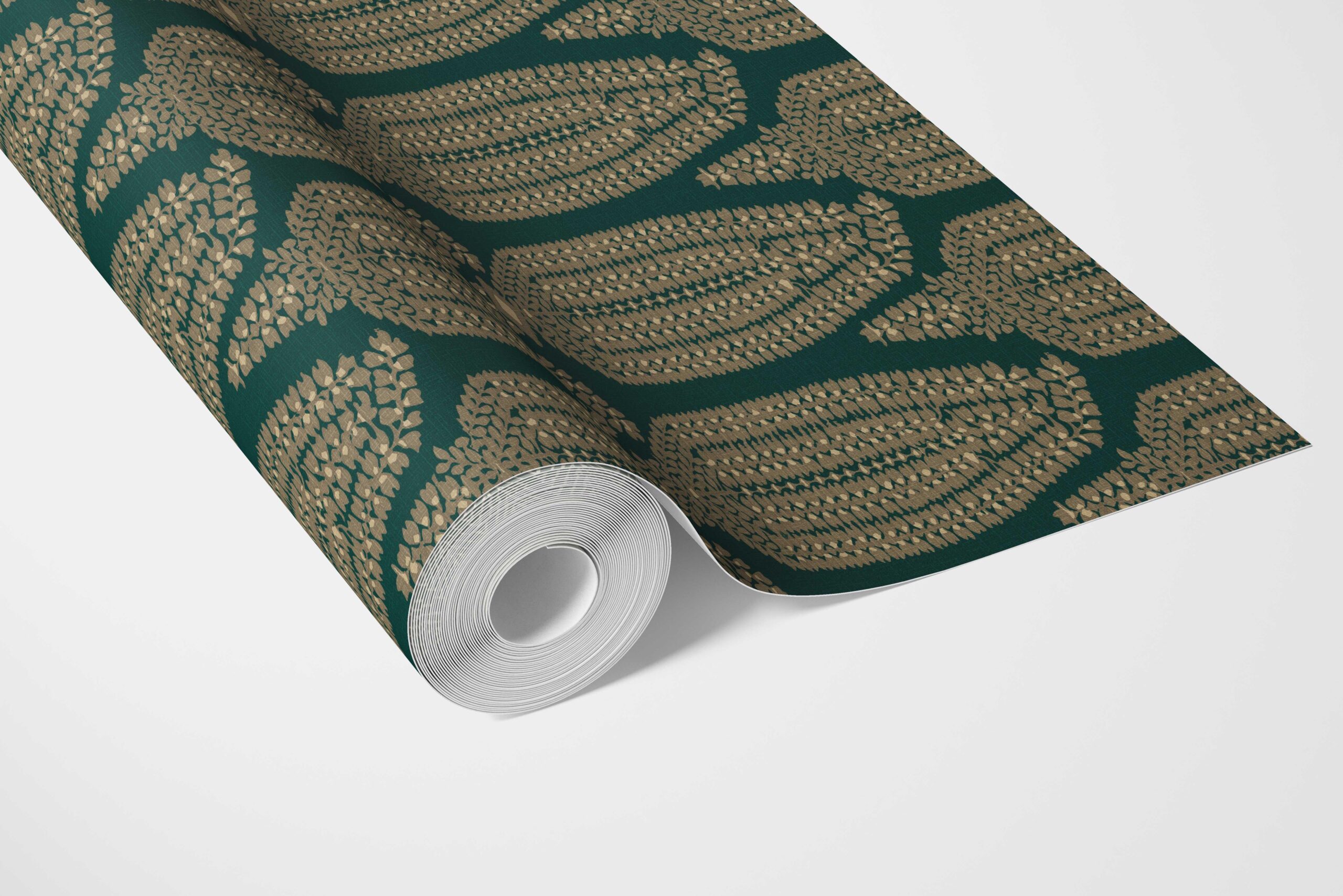 ‘Calobra’ Paisley Floral Wallpaper (Emerald Green/ Gold)