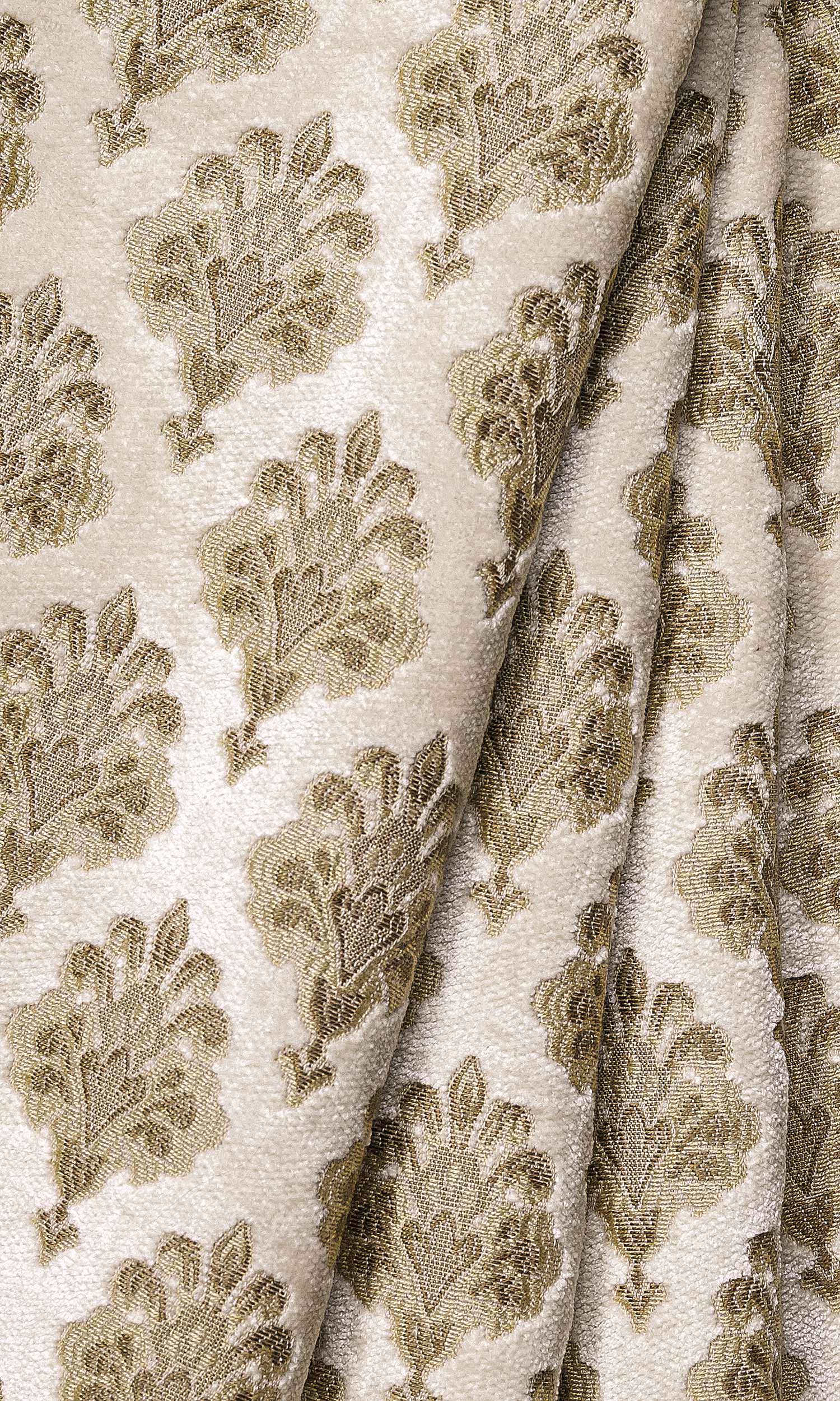 This luxurious jacquard woven fabric features an intricate and antique-inspired floral pattern in beige and brown. The alternating placement of floral motifs adds a subtle geometric element to this densely woven fabric that looks utterly exquisite. Perfect for a formal space!