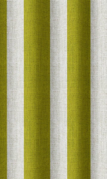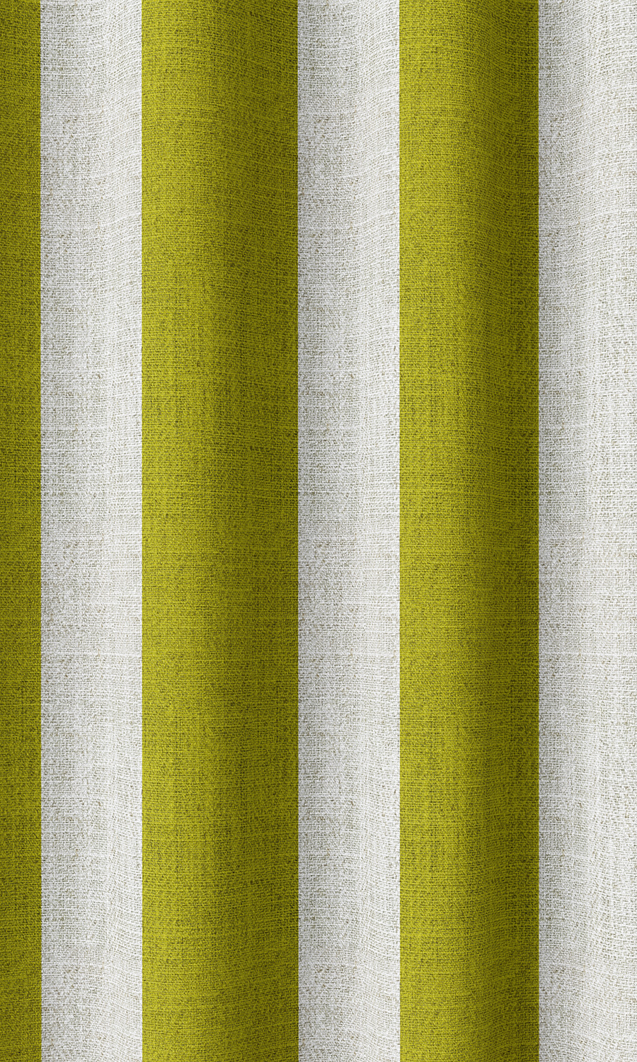 Create a cheerful mood for your living room or bedroom with this vibrant fabric. Featuring a repeating pattern of bold, wide stripes, Celery has a rich herringbone weave base. It boasts springtime hues of apple green and white that will add a pop of pizzazz to your living space, and is suited to many different decorating styles, including contemporary, transitional and boho. We recommend showcasing this fabric in flat panel roman shades and casual style drapes.