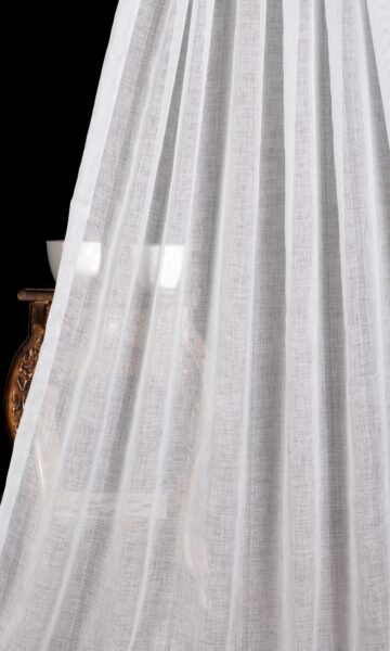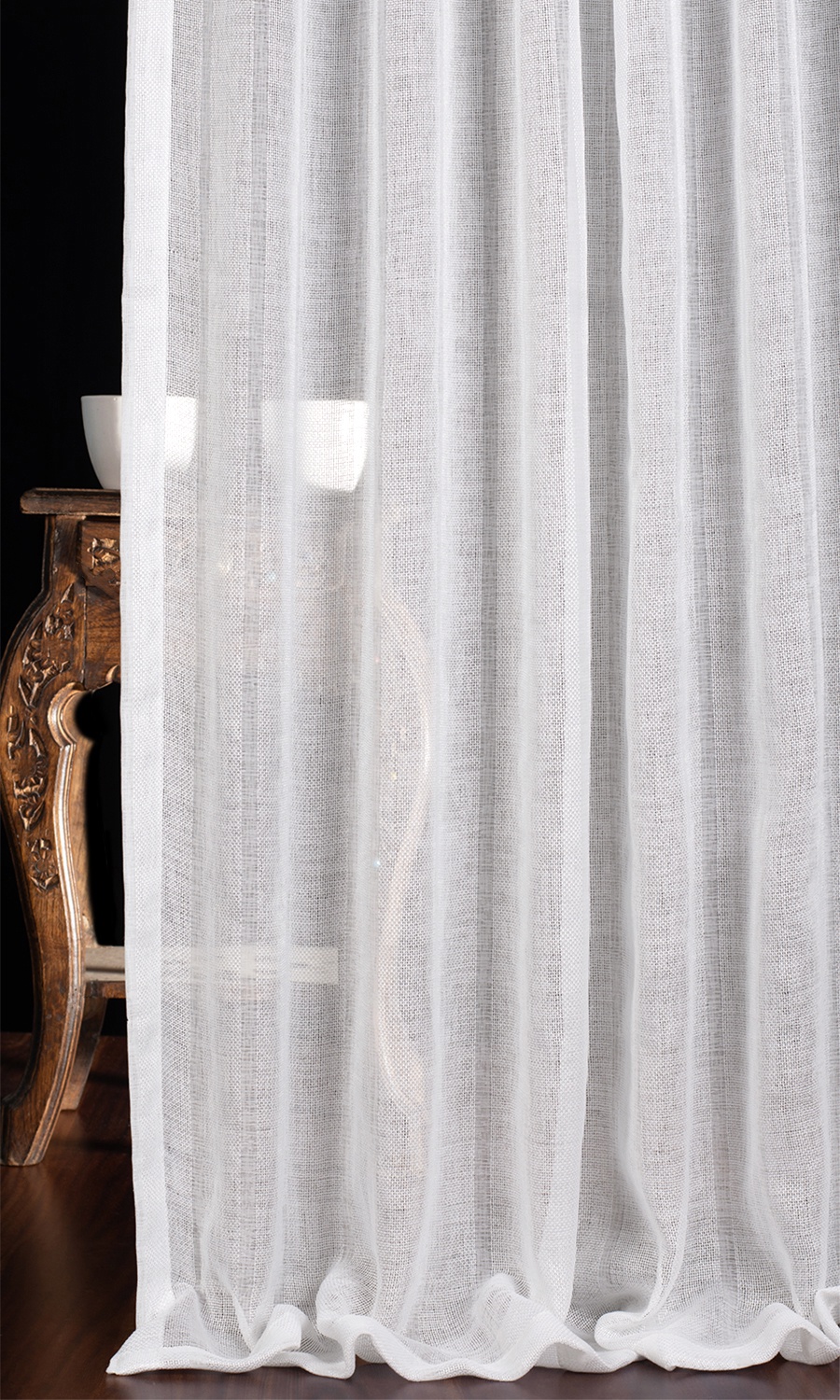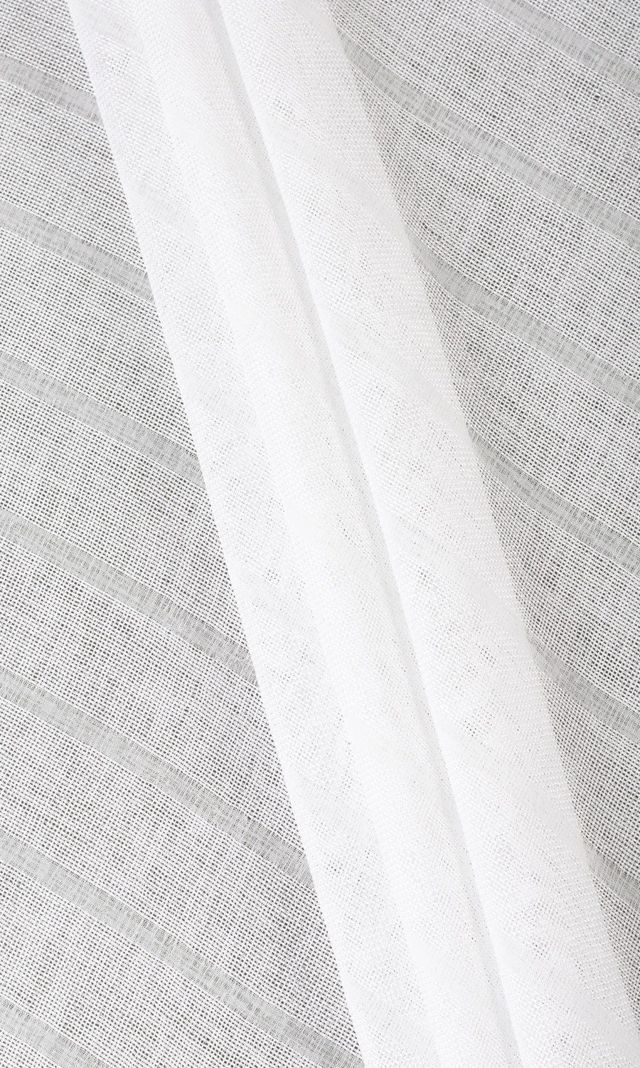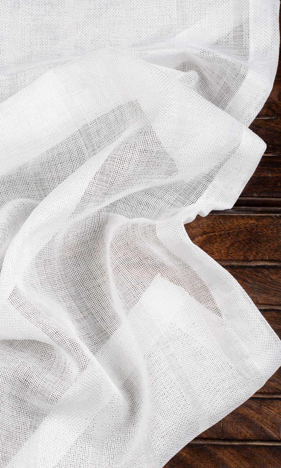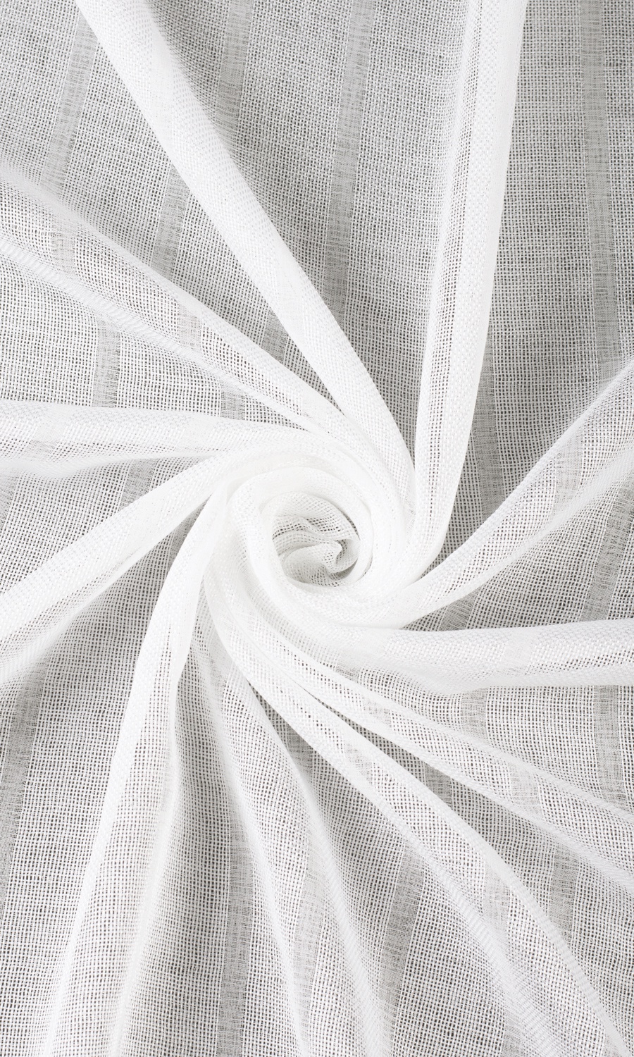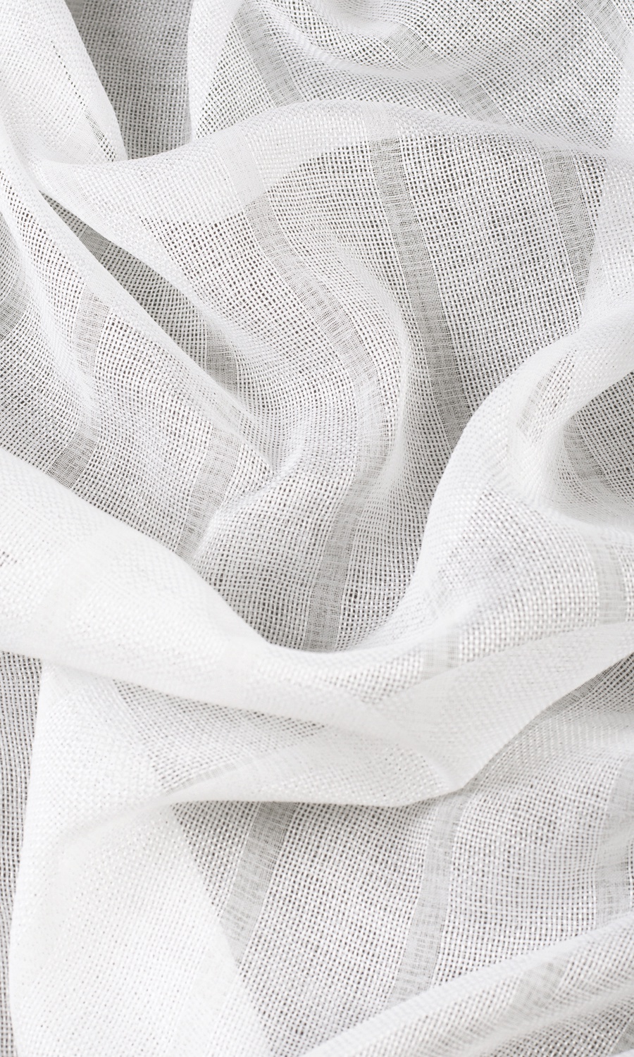 The epitome of simplicity and ethereal charm! A pure white sheer with a wee bit of detail hidden in its textured stripes, ‘Bright Frost’ offers the dreamy elegance that sits right in a coastal home, a country cottage and a modern condo with equal ease. Light, breathable and timelessly elegant, this sheer is characterized by a calm, uncluttered visual appeal and guarantees privacy during the day while welcoming light.
