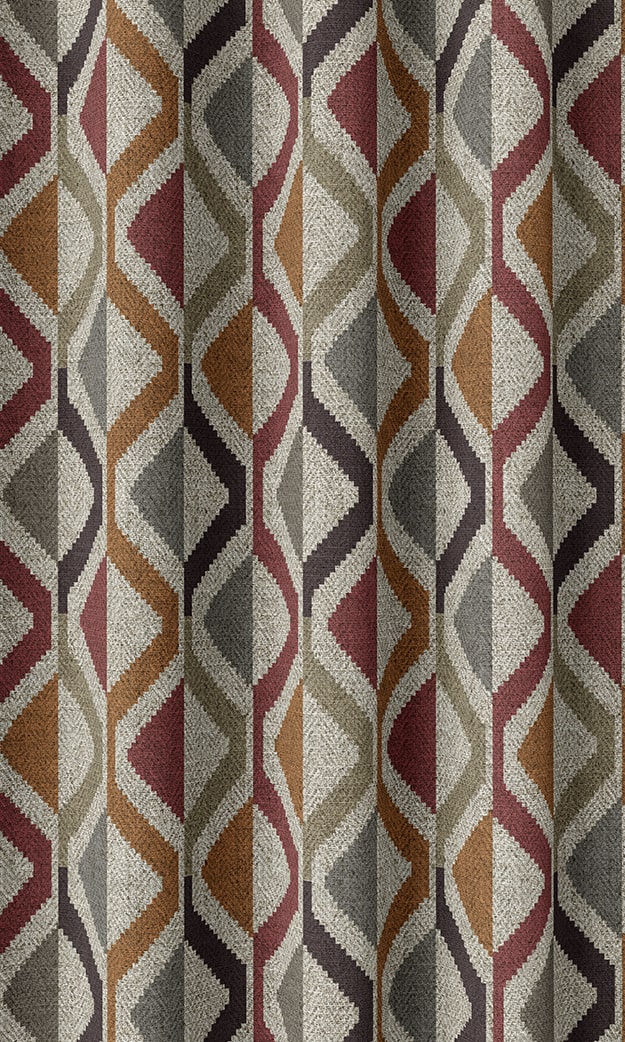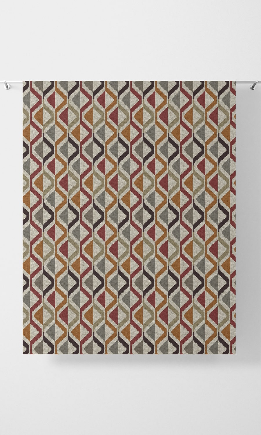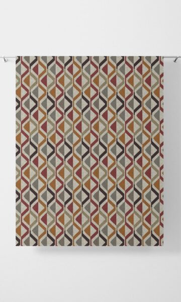 Featuring a modern geometric pattern of a layered harlequin, this stylish fabric is all set to update your home with trend-right motifs and colors. Designed in brick red, orange and gray, window treatments in this fabric fit in with a wide range of color schemes and decor styles. The busy pattern laden with pops of red infuses dynamism hands down and can be a game-changer for a room gone stark with too many solid-colored elements.