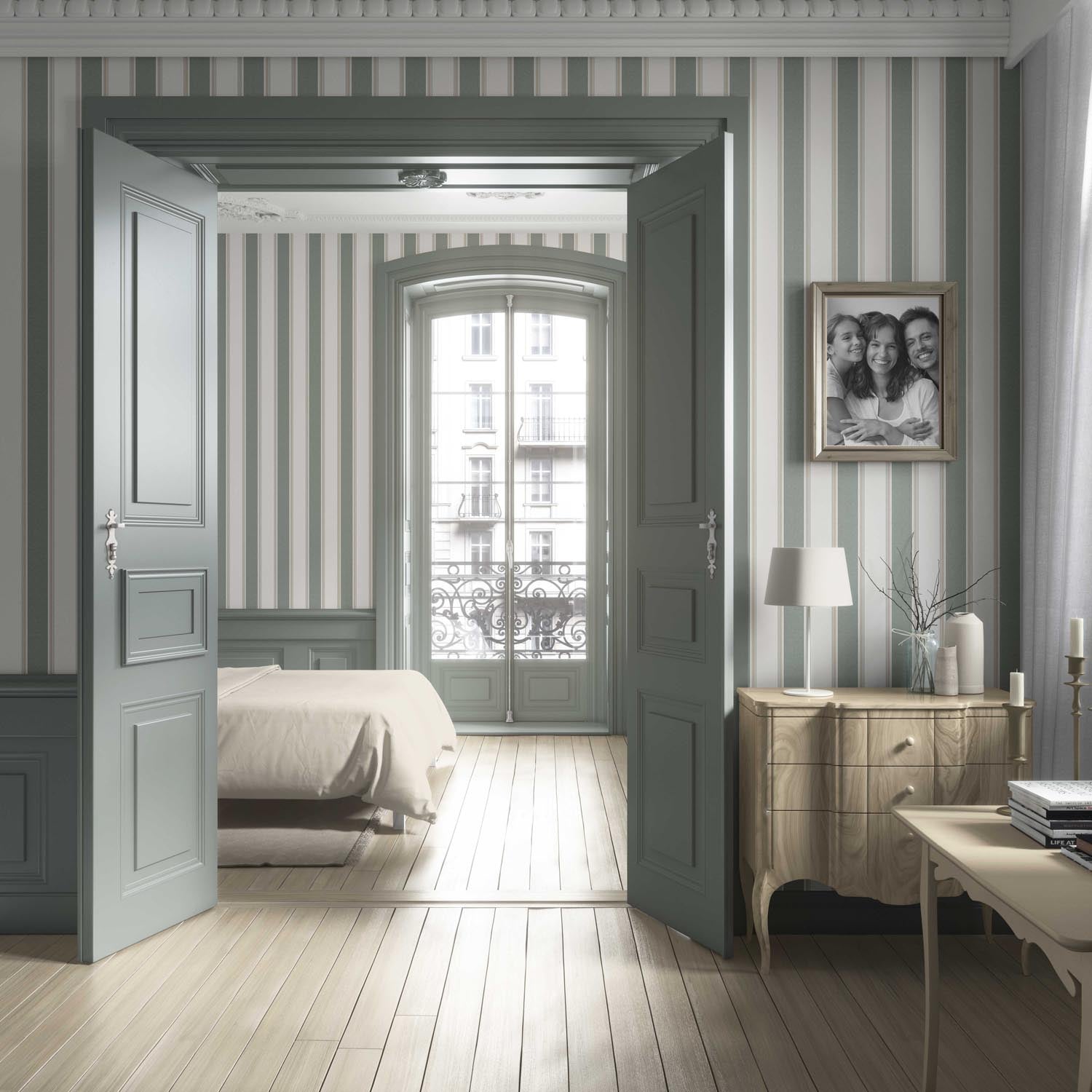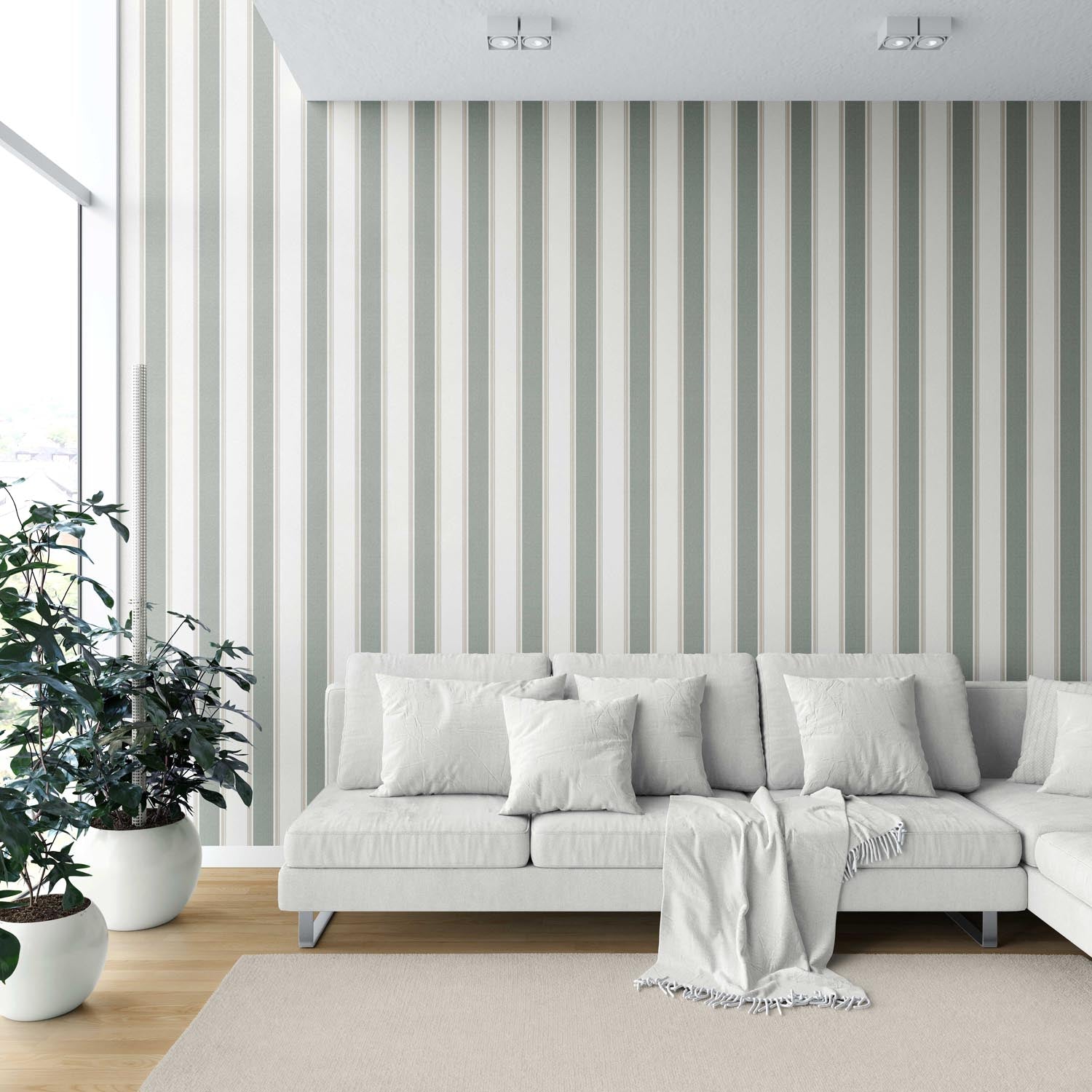 ‘Charisma’ Geometric Striped Wallpaper (Gray-Green)