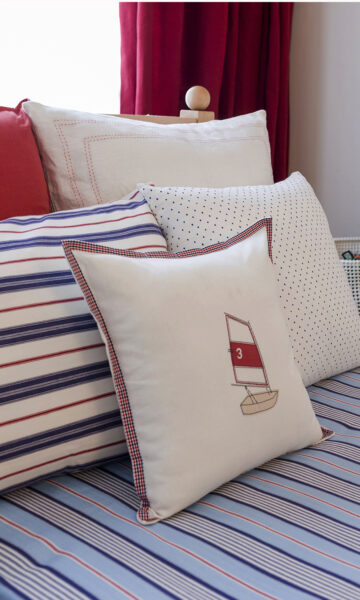 Boy oh boy! How we love these for a little one’s sailor-theme nursery. Featuring the classic boyish palette of blue and red, Chelsea Ahoy can be paired with its solid coordinates Chelsea Red and Chelsea Blue.