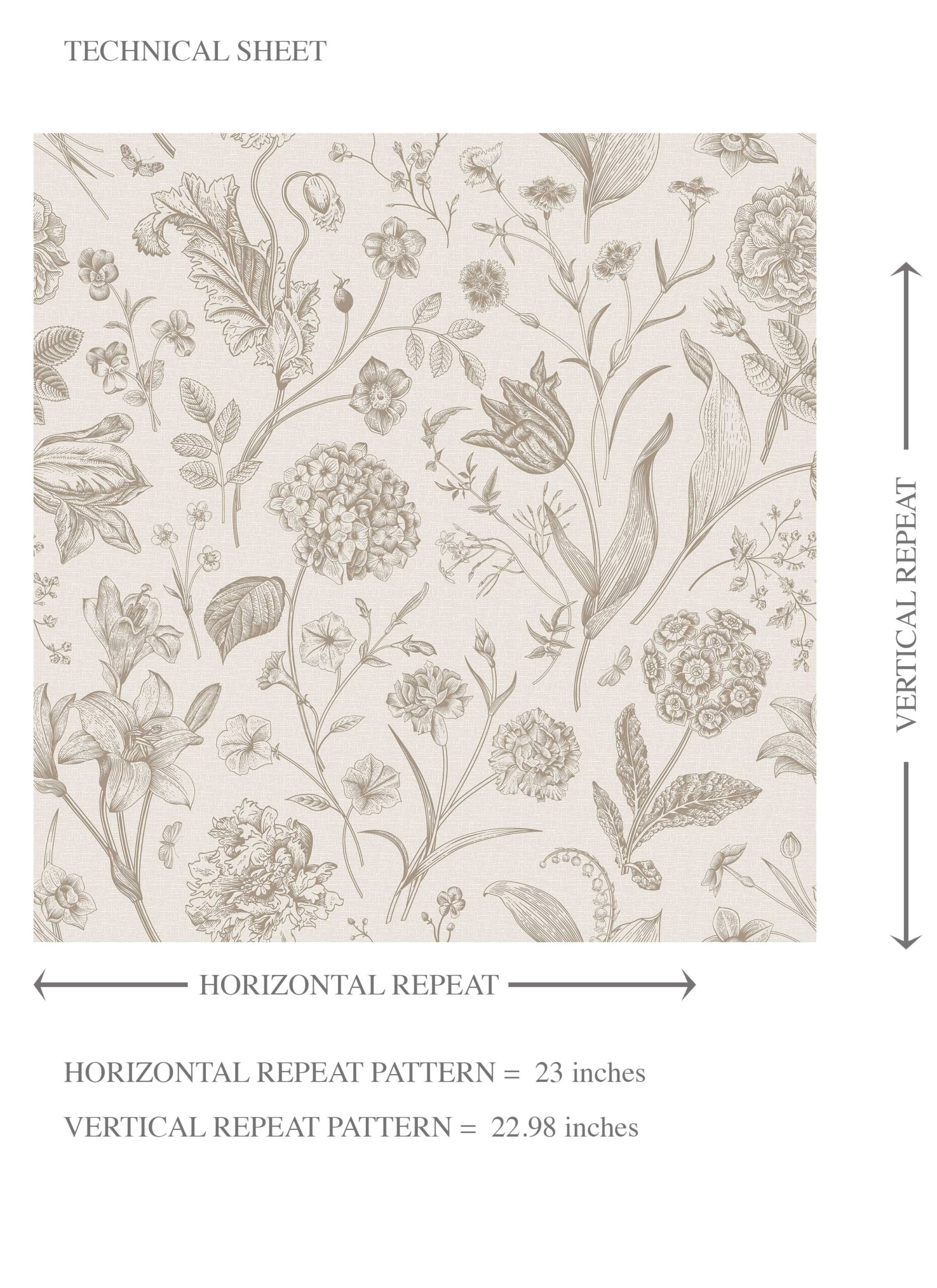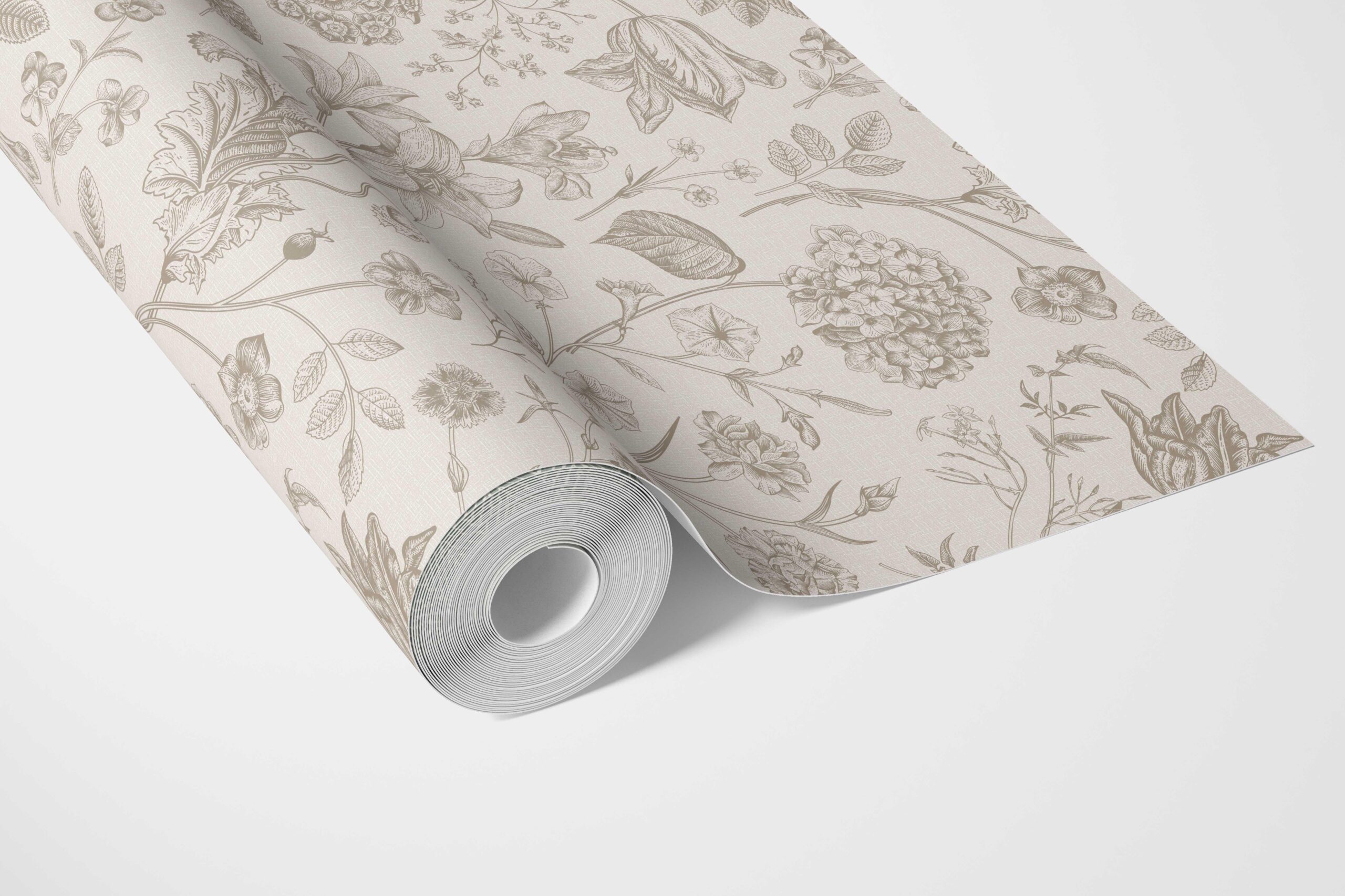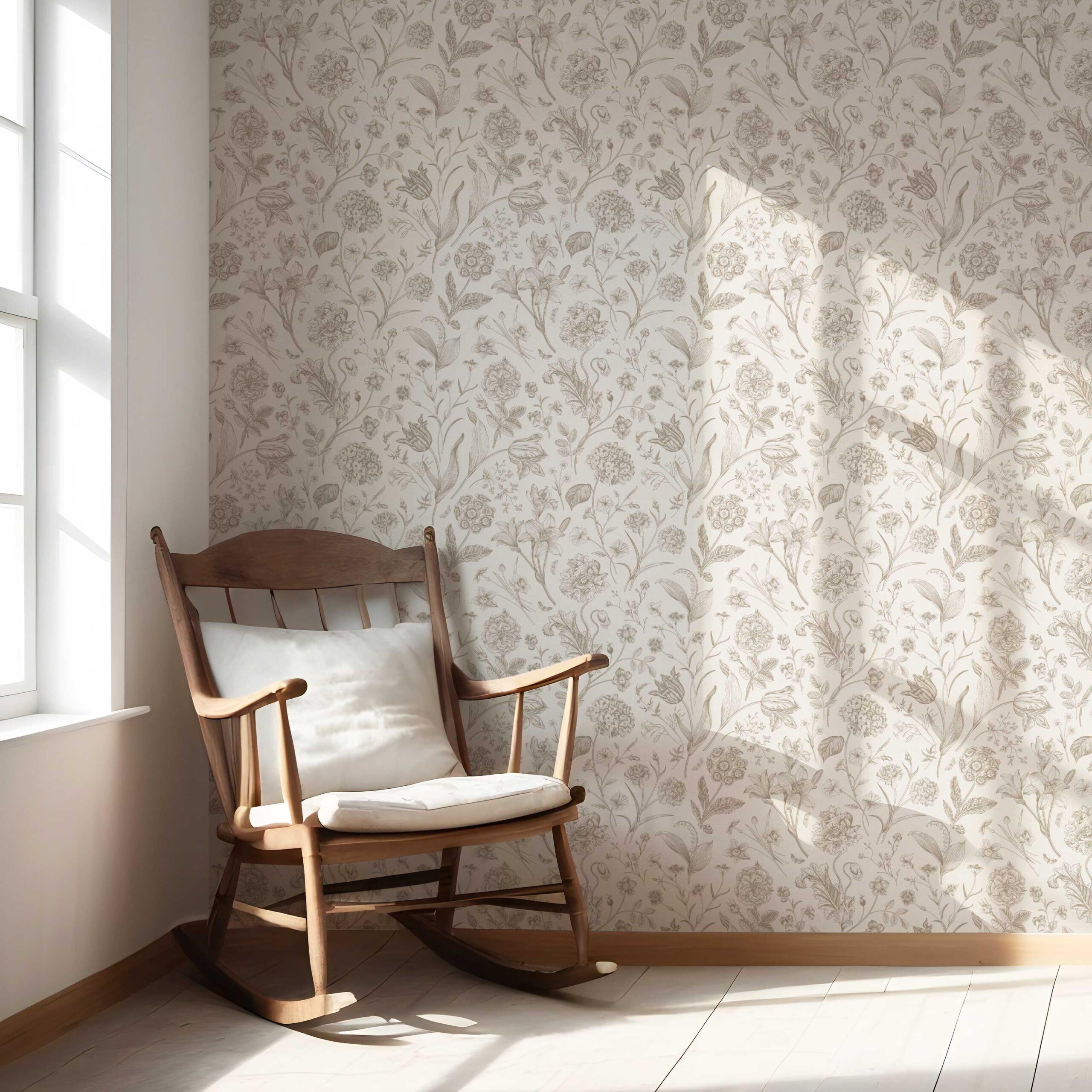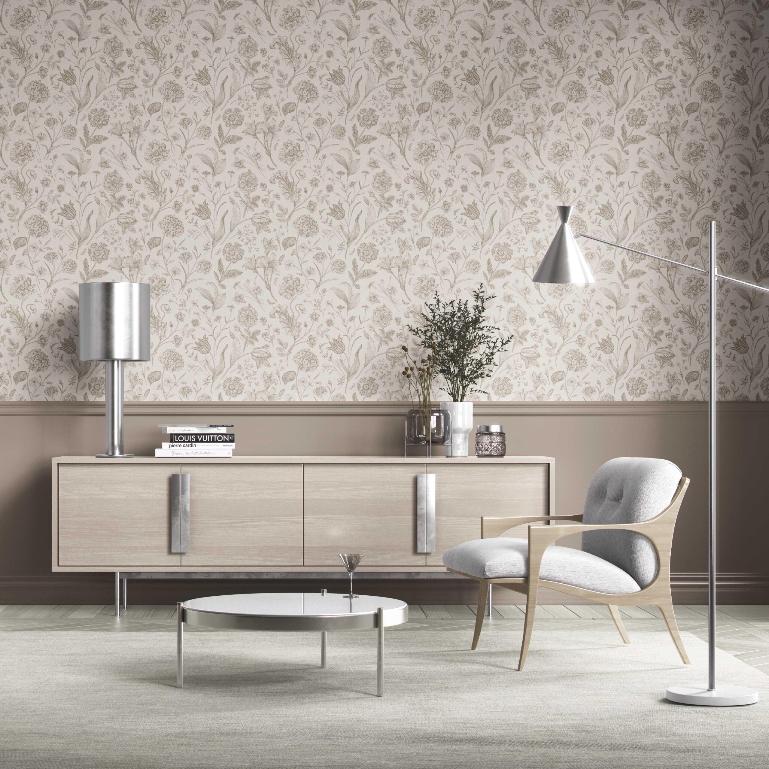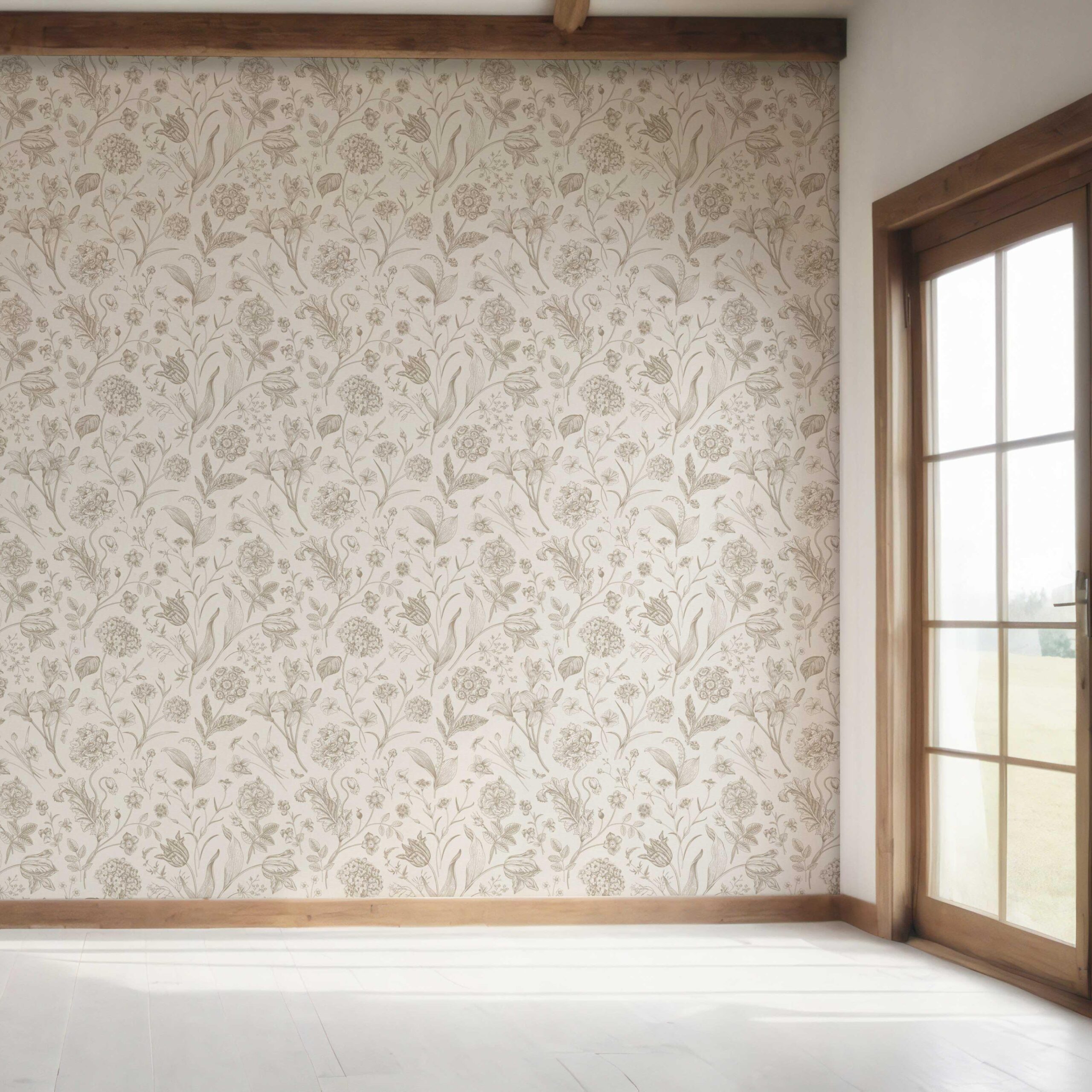 ‘Chill Buff’ Neutral Floral/ Botanical Wallpaper (Beige/ Soft Taupe)