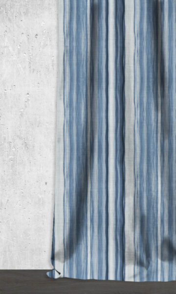 Update your decor with this flatweave, linen-like fabric and its evocative pattern of sinuous stripes. Clocktower’s’ lovely color palette of hues of blue, and not-too-rigid stripes lend a modern touch to this fabric, while its oceanic tones promise pairing ease.
