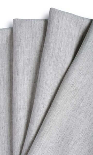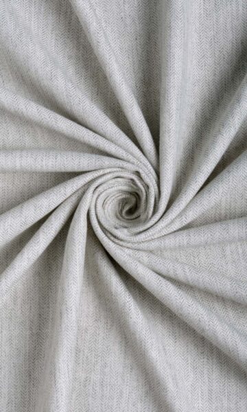 Featuring the classic herringbone weave, this self-patterned fabric might interest fans of monochrome on a richly texture base. The soft gray and white tones produce a calming effect and will backdrop dark and bold-hued elements of your home very well. Lacking prints, this drapery fabric is ideal for styles that create designs through the construct such as pinch pleat drapes, relaxed roman shades, and front-slatted roman shades.