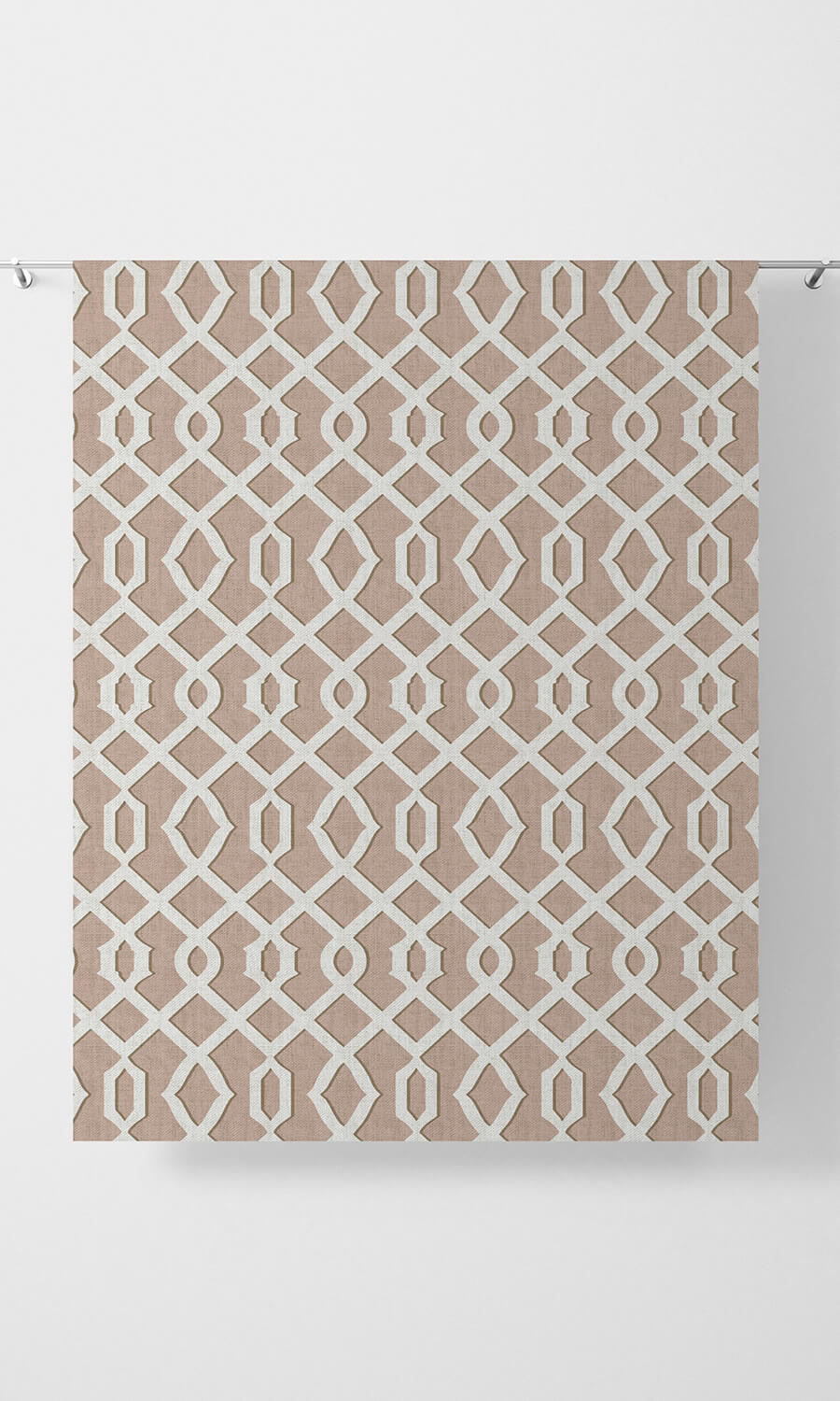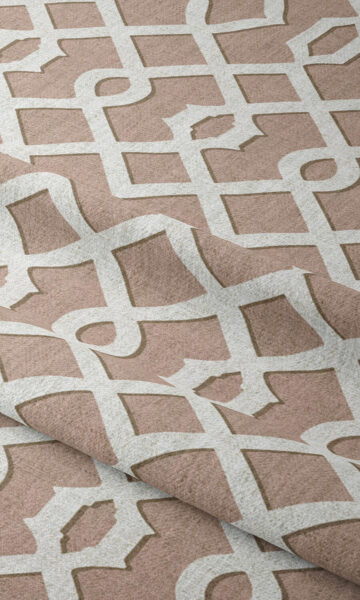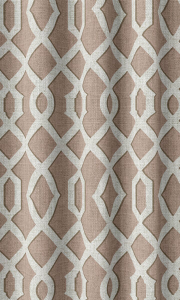 This rosy brown and white fabric makes a beauteous presentation of the classic Moroccan trellis motif in a modern palette. The continuously flowing pattern that makes a pleasing meld of curvy shapes and straight lines is a visual treat and serves as a glad break among solid colored elements.