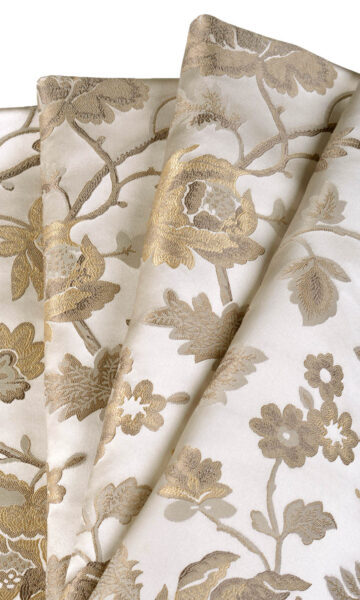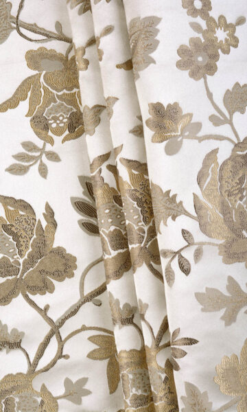 When you room needs to look a cut above the rest, opt for this beautiful self patterned floral damask fabric. Its monochrome beige and brown palette with brightening touches of an almost golden shade of brown looks very exclusive. Though this fabric works well with all decor styles, it looks truly fabulous in vintage inspired places. We recommend pinched pleated curtain style for maximum impact.