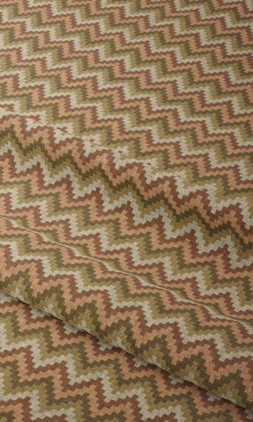 For lovers of geometric designs, this chic fabric featuring medium-scaled chevrons is an out-and-out pick. It?s an enticing mix of an energetic pattern and an assorted color palette. Hues of brown, pink, and green offer a sophisticated palette suitable for vibrant interiors while the playful motif accentuates its effect on the space. Drapes and roman shades in this fabric will be an attractive addition to modern and contemporary homes.