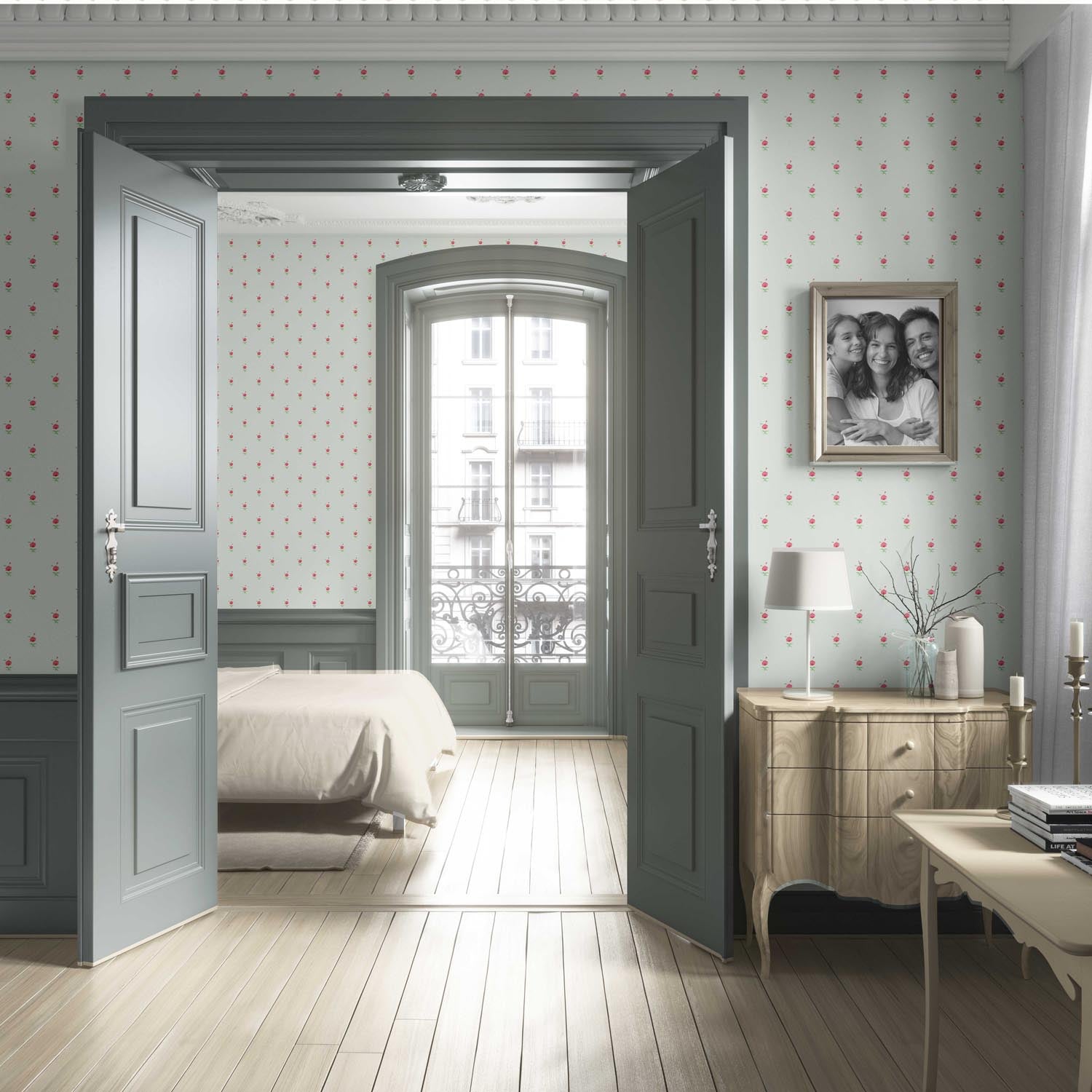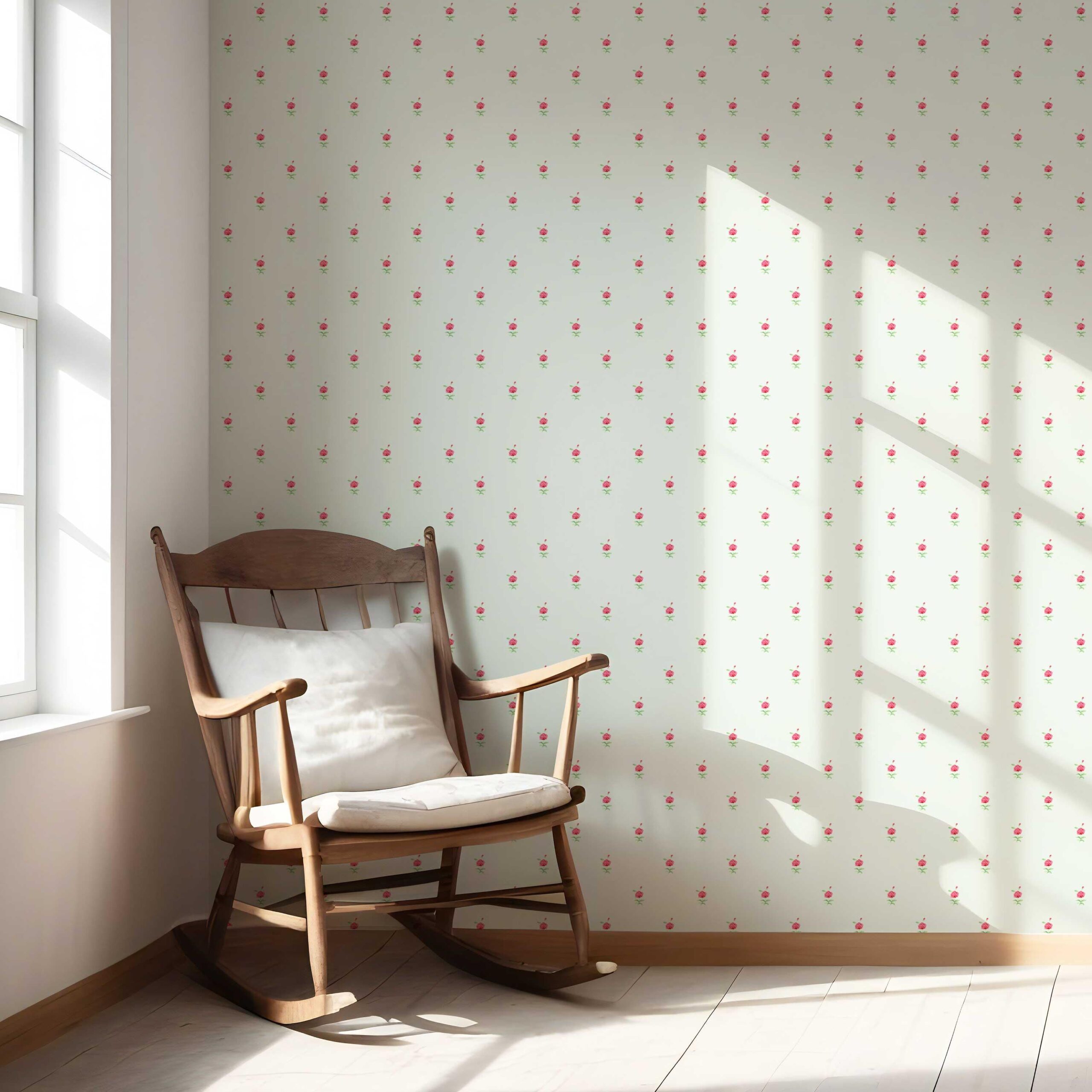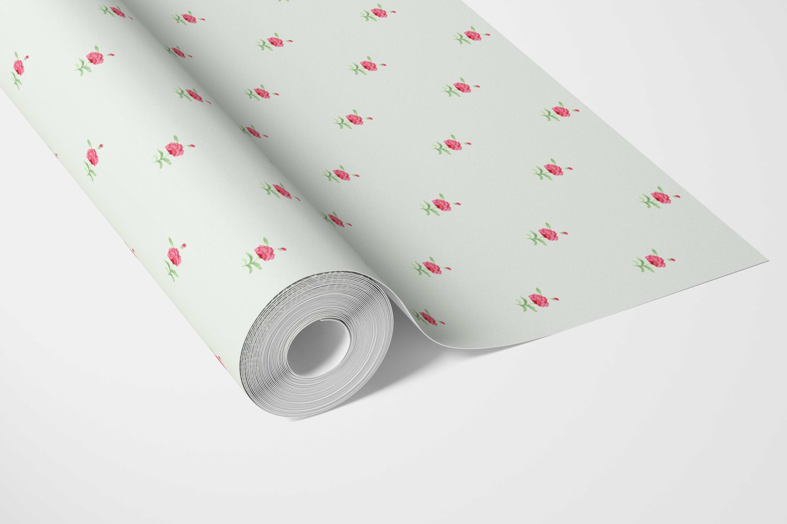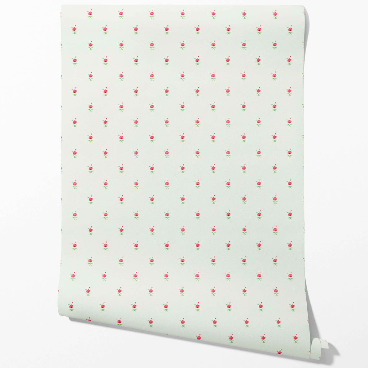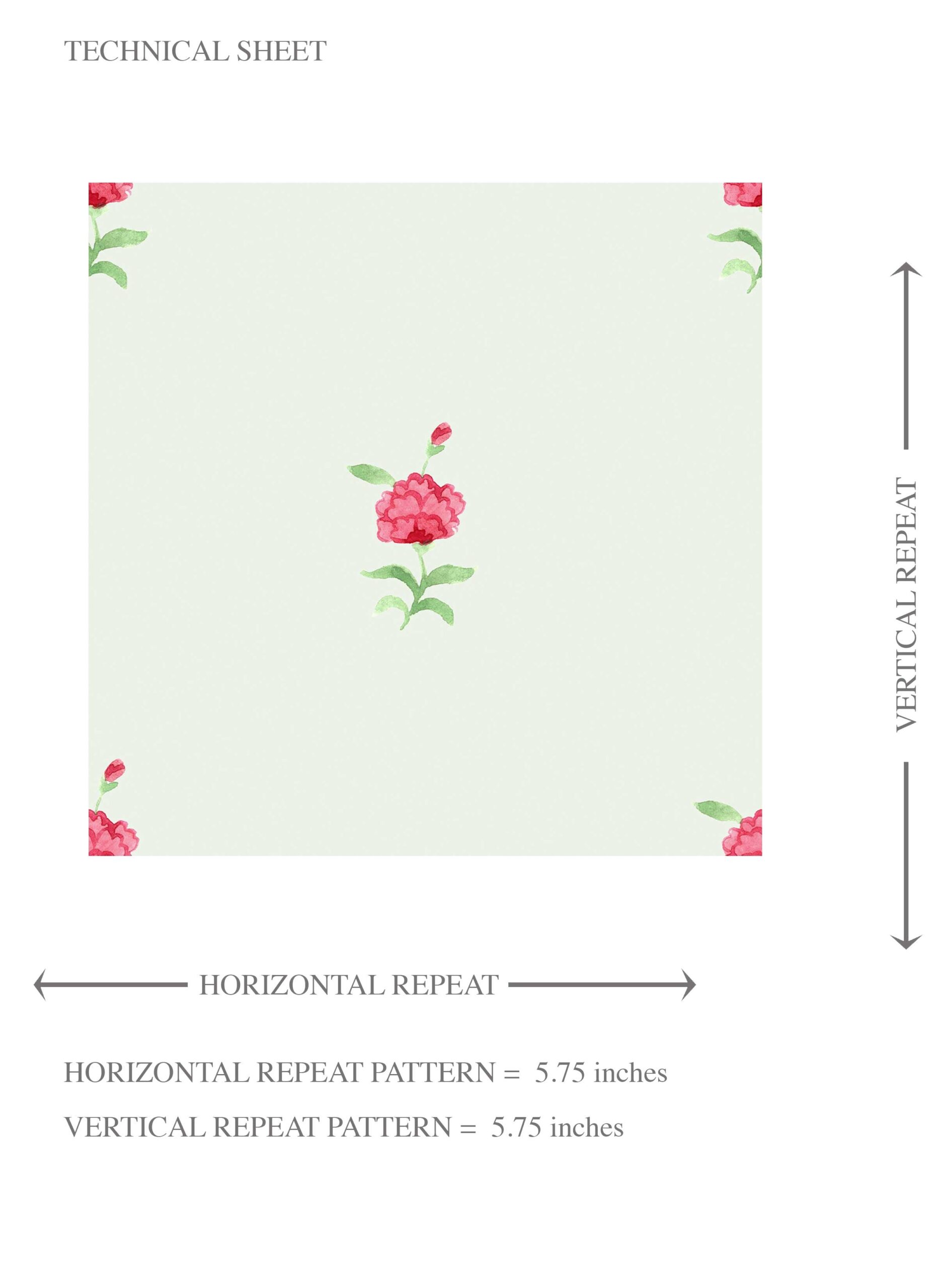 ‘Corallo’ Vintage-Inspired Floral Block Print Wallpaper (Mint Green/ Pink)
