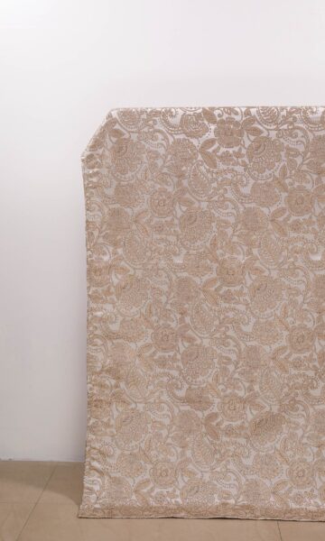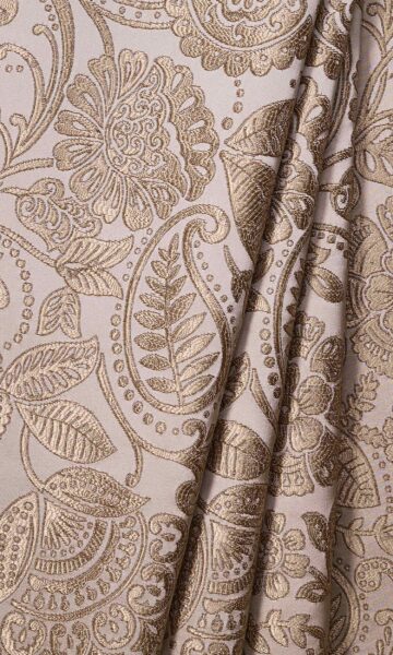 Evoke lavishness in your interiors with these self patterned drapes designed in two tone of beige. An eye catching fusion of paisleys, leaves, florets, trellises and dots, its dual tone soft and glossy look is ultra luxurious. Sheer perfection all over!