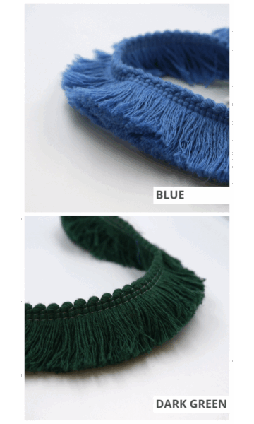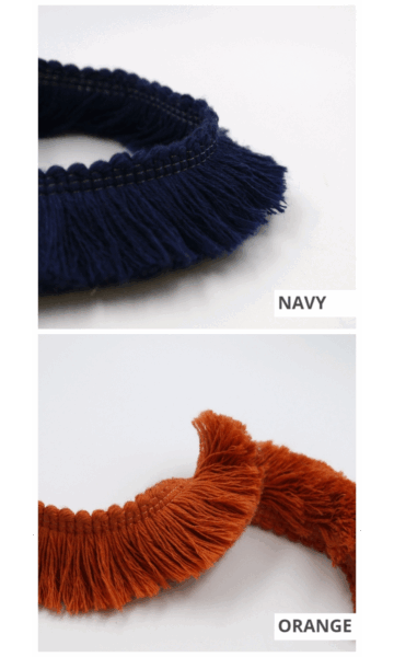 Dress up your curtains with these full and thick, cotton brush fringe trims. This fashionable trim is available in 6 colorways – giving options for every space and palette. The 30mm fringe has a more rustic and natural feel compared to our viscose equivalent.