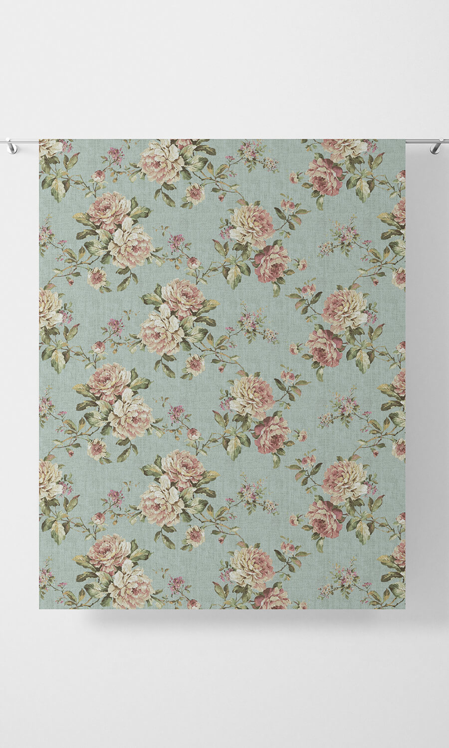 Featuring a subtle blue with accenting pink carnations repeating across the fabric. This stunning floral design has an eye-catching quality that’s sure to draw the interest of guests and family alike, especially thanks to the texture-rich herringbone weave. The warm, balanced colors and design evoke the feeling of spring and foster a sense of peacefulness. It’s a beautiful, yet comforting and nostalgic design that makes for the perfect set of drapes in a bedroom.