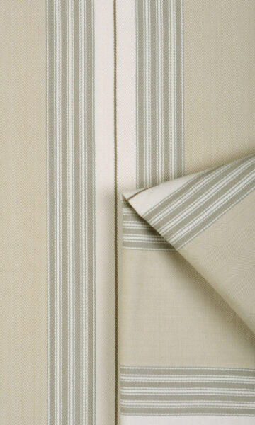 Featuring a delicate striped pattern of beige, white and taupe, Courtyard Tan has an earthy quality to it. It’s an elegant neutral fabric that sits well in almost any decor and setting.