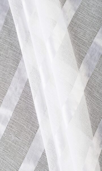 Merging a neutral hue and a streamlined pattern, this white sheer with wide vertical stripes is a versatile piece that can mingle with many palettes, patterns and decor styles. The ribbon stripes not only bring in pattern play but also add visual depth with their lustrous textural quality. As it filters light and air, it lends its pattern to the interiors of the home, casting dramatic striped shadows, and elevating a decorative detail into a delightful visual display.