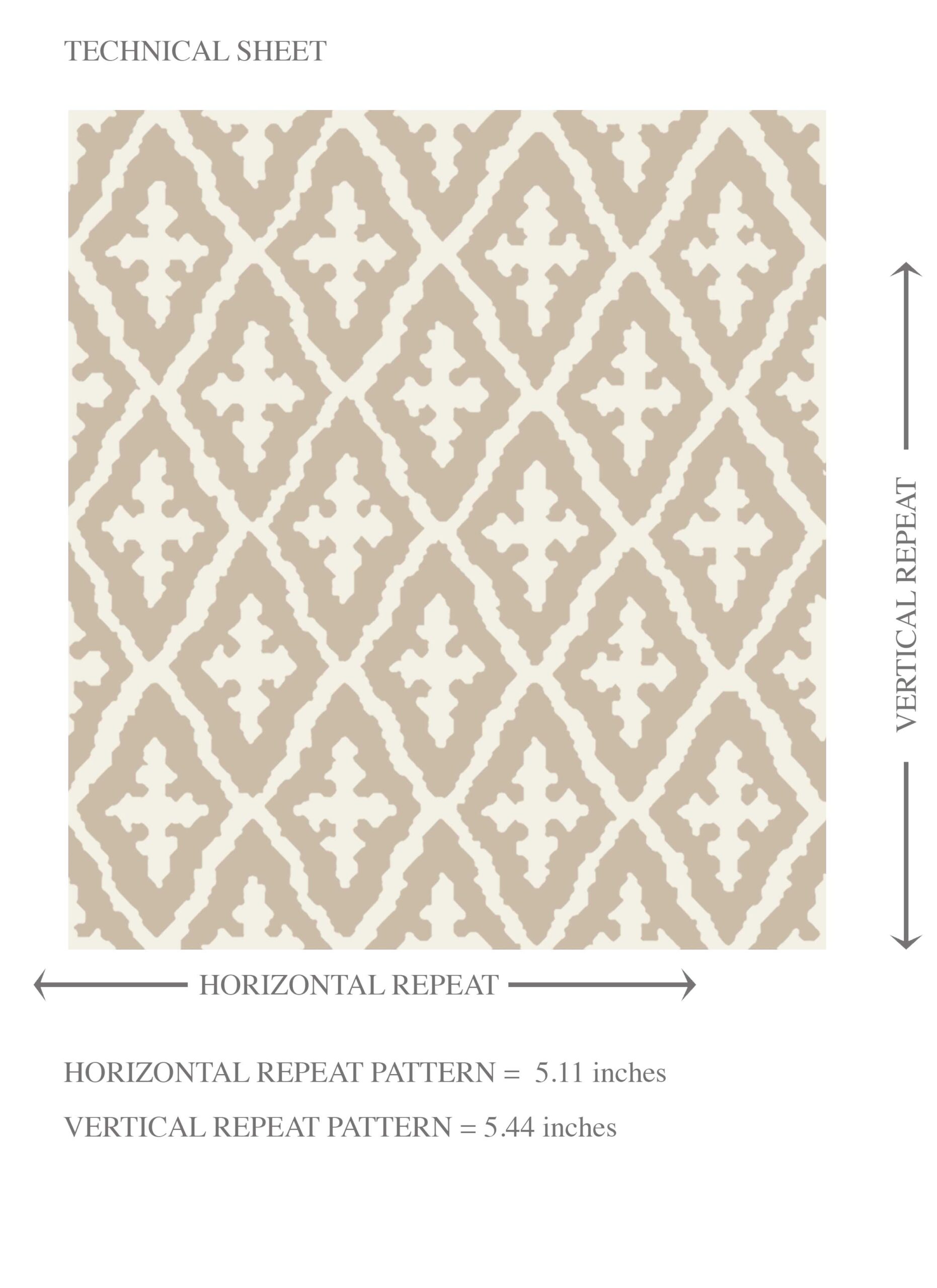 NON-PASTED: ‘Cypriot’ is an unpasted wallpaper installed by applying adhesive paste (not provided by us, but easy to source) to the wall. While peel-and-stick papers do not leave much room to change the paper’s position once you start applying it, the traditional, non-pasted application is more forgiving, allowing for better positioning when matching patterns.