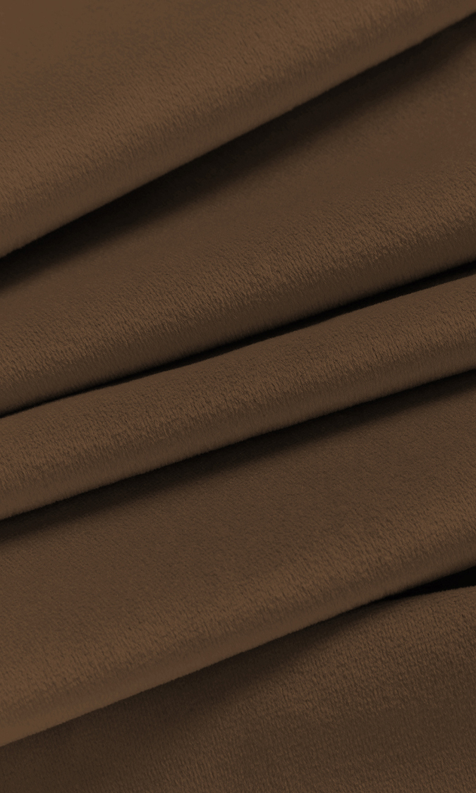 Looking for window treatments that echo the deep brown of your wooden joinery? This velvet drapery fabric featuring a rich forest brown tone can meet this specific color goal but also blend with almost any color palette under the sun. For a design aesthetic that reveres texture above shapes and colors, nothing can be more gratifying than the plush piled velvets. Enjoy watching light sketching chromatic depictions on the rich naps of your shades and drapes.