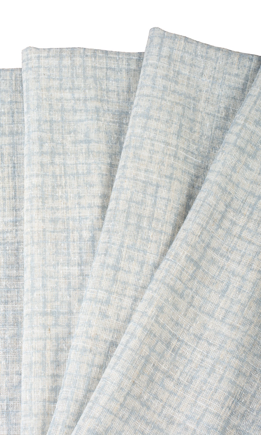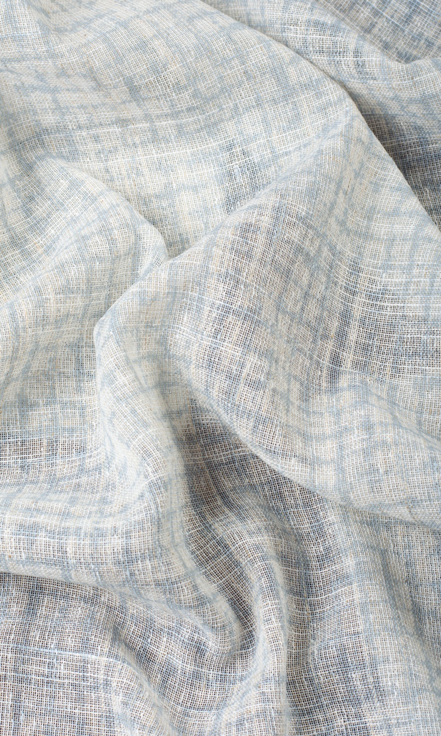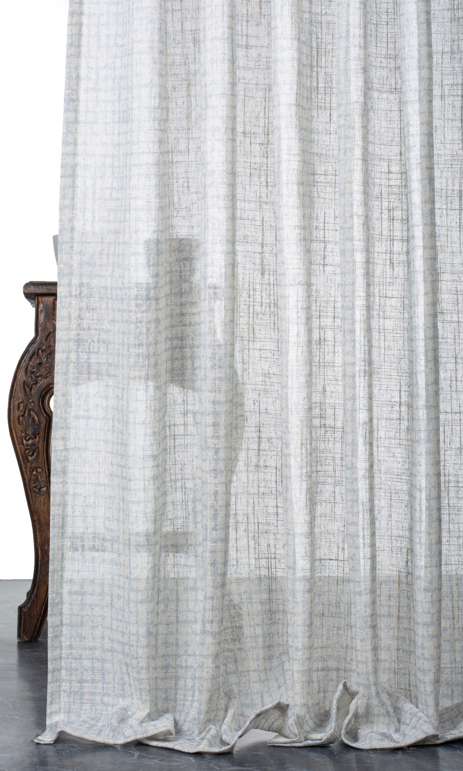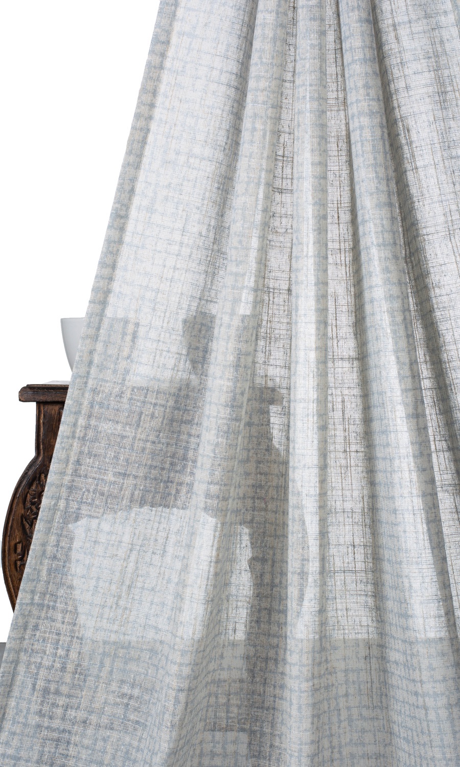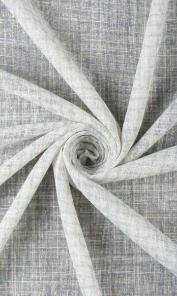 A white sheer that stands out from the rest with its rich slubbed texture and a unique abstract print. Its turquoise blue strokes offer just the right bit of visual interest that can be the subtle pattern and the mild dose of oomph you might be aiming to add to a modern space. Welcome diffused light and lovely shadows with this linen, made dimensionally stable and sturdy by its collaboration with polyester.