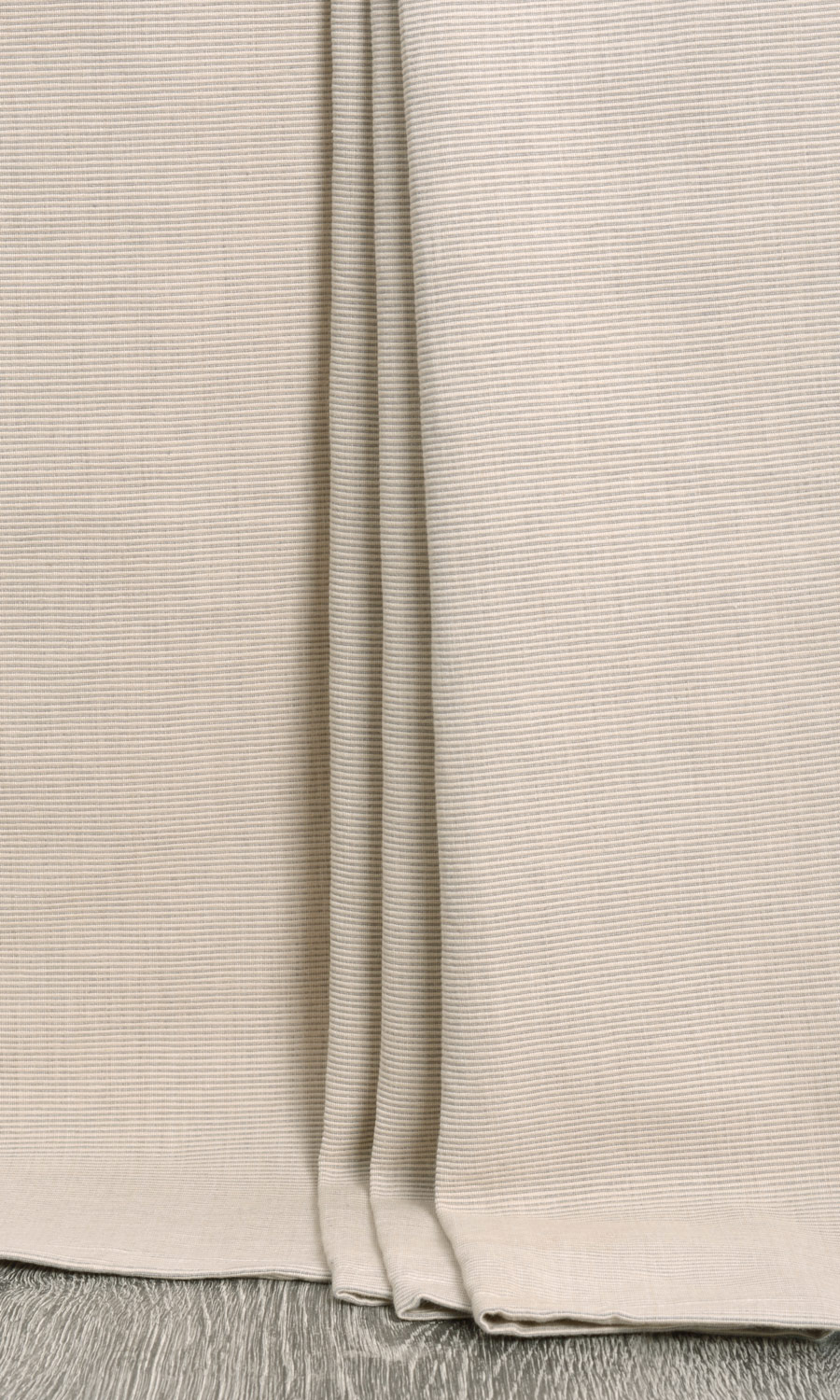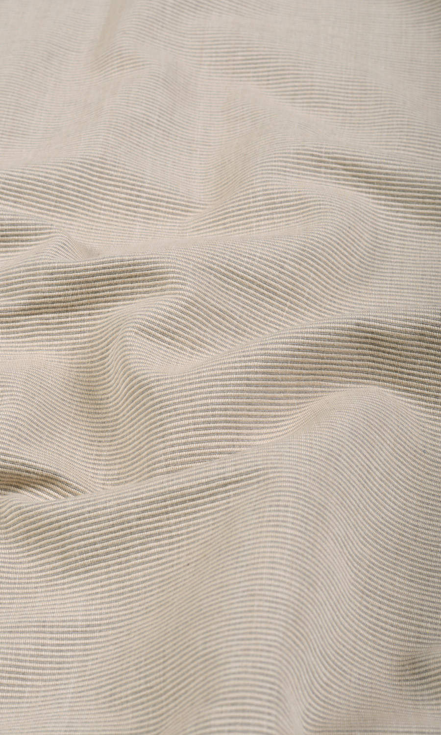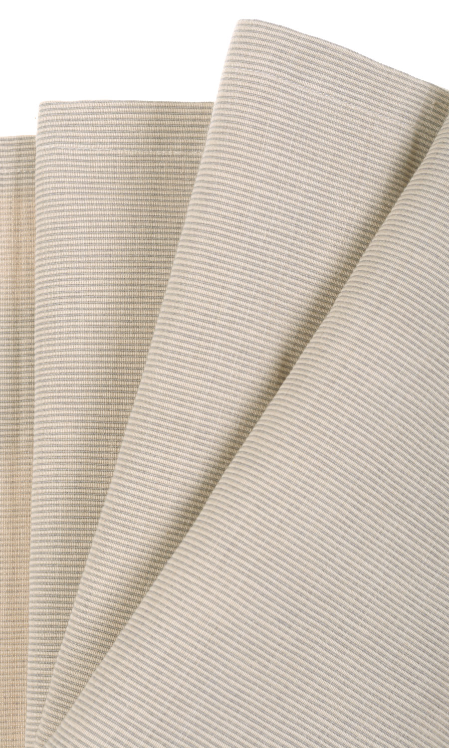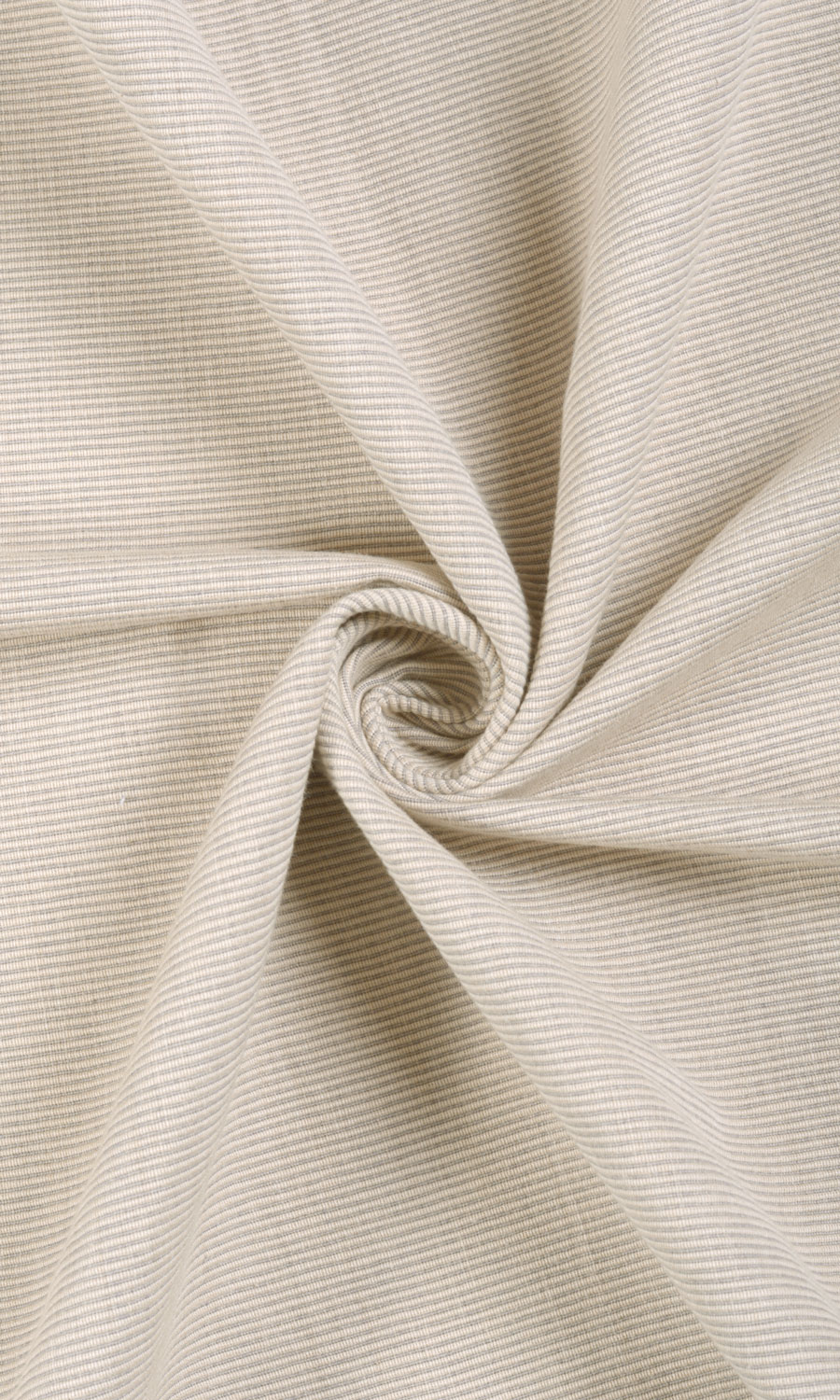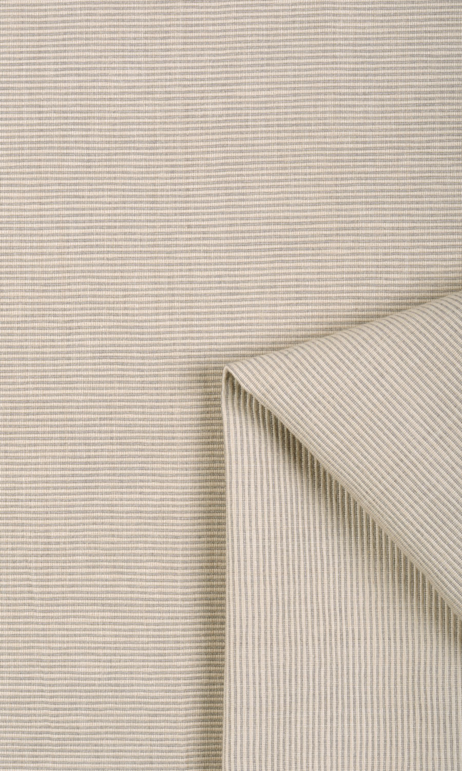 Our stylishly chic neutral fabric with a tightly woven stripe of ivory and grey. The cream and grey complement each other creating a delightfully slubby natural ground, affording you the opportunity to mix with other styles and colors.