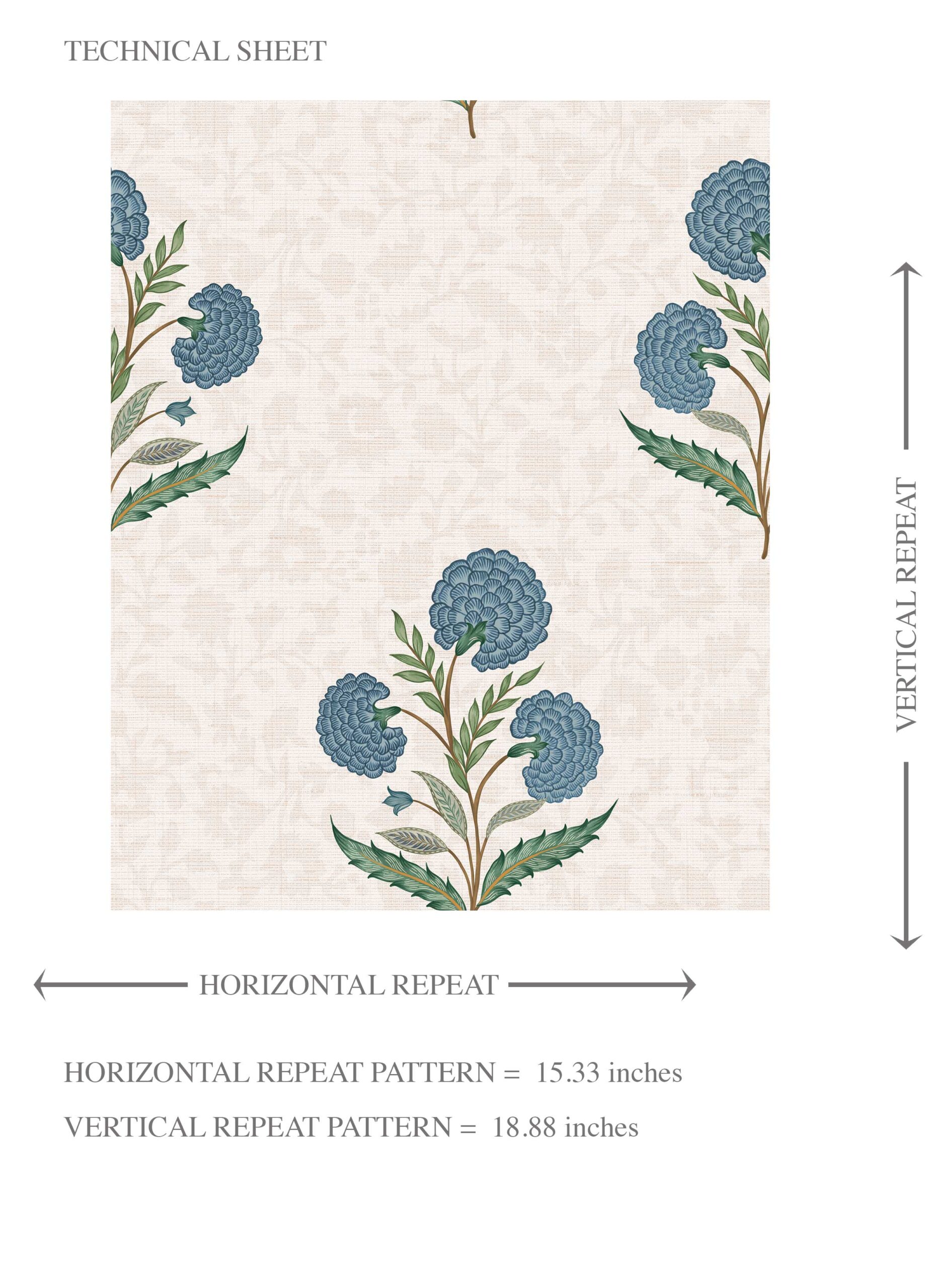 NON-PASTED: ‘Daydream’ is an unpasted wallpaper installed by applying adhesive paste (not provided by us, but easy to source) to the wall. While peel-and-stick papers do not leave much room to change the paper’s position once you start applying it, the traditional, non-pasted application is more forgiving, allowing for better positioning when matching patterns.