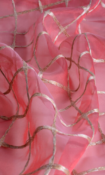 Add a vibrant yet ethereal note to your interiors with these stunning sheer curtains in coral pink and gold. Made with fine translucent fabric and embroidered in check motif, these sheer curtain panels give a youthful and refreshing vibe to uplift any room. For added privacy, you can order liners or layer these with complementary drapes or back up with roman blinds.