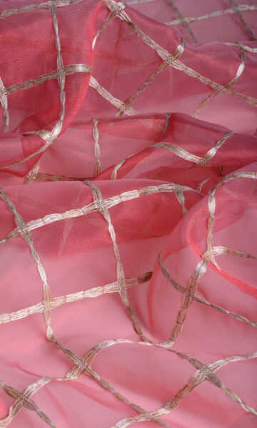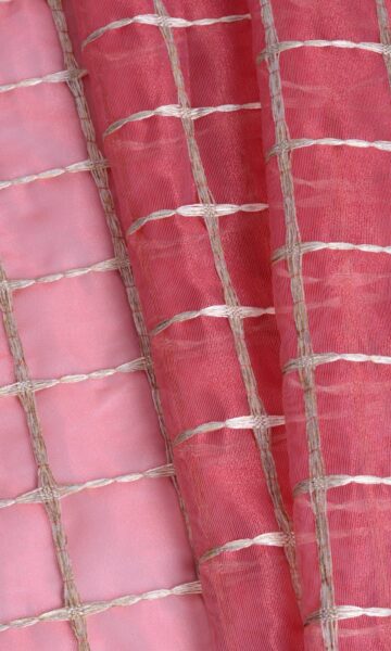 ‘Dhani’ Checked Sheer Custom Drapes (Coral Red/ Pink/ Gold)
