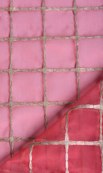 Add a vibrant yet ethereal note to your interiors with these stunning sheer curtains in coral pink and gold. Made with fine translucent fabric and embroidered in check motif, these sheer curtain panels give a youthful and refreshing vibe to uplift any room. For added privacy, you can order liners or layer these with complementary drapes or back up with roman blinds.