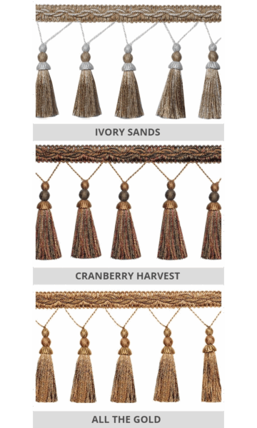 Please note our trims are not sold standalone. Please be sure to puchase your drapery or roman shades alongside this trim.