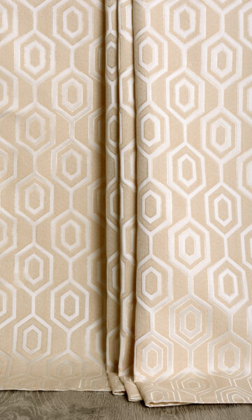 ‘Doku’ Honeycomb Patterned Custom Drapes (Sand Beige/ White)