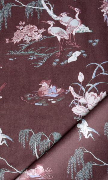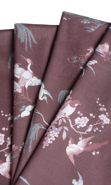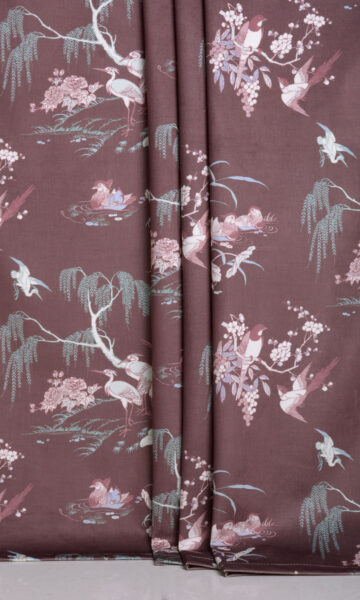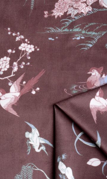 If you love earthy tones and nature themes, here?s a wonderful way to flaunt it. This splurge-worthy burgundy-wine velvet is for those who love patterns but are not overwhelmed by statement window treatments. Inspired by the traditional chinoiserie and toile motifs, the candid moments of our winged friends have been captured in this plush velvet print. With an army of indoor plants around, you can easily mimic a jungle and dine al fresco right within your home.