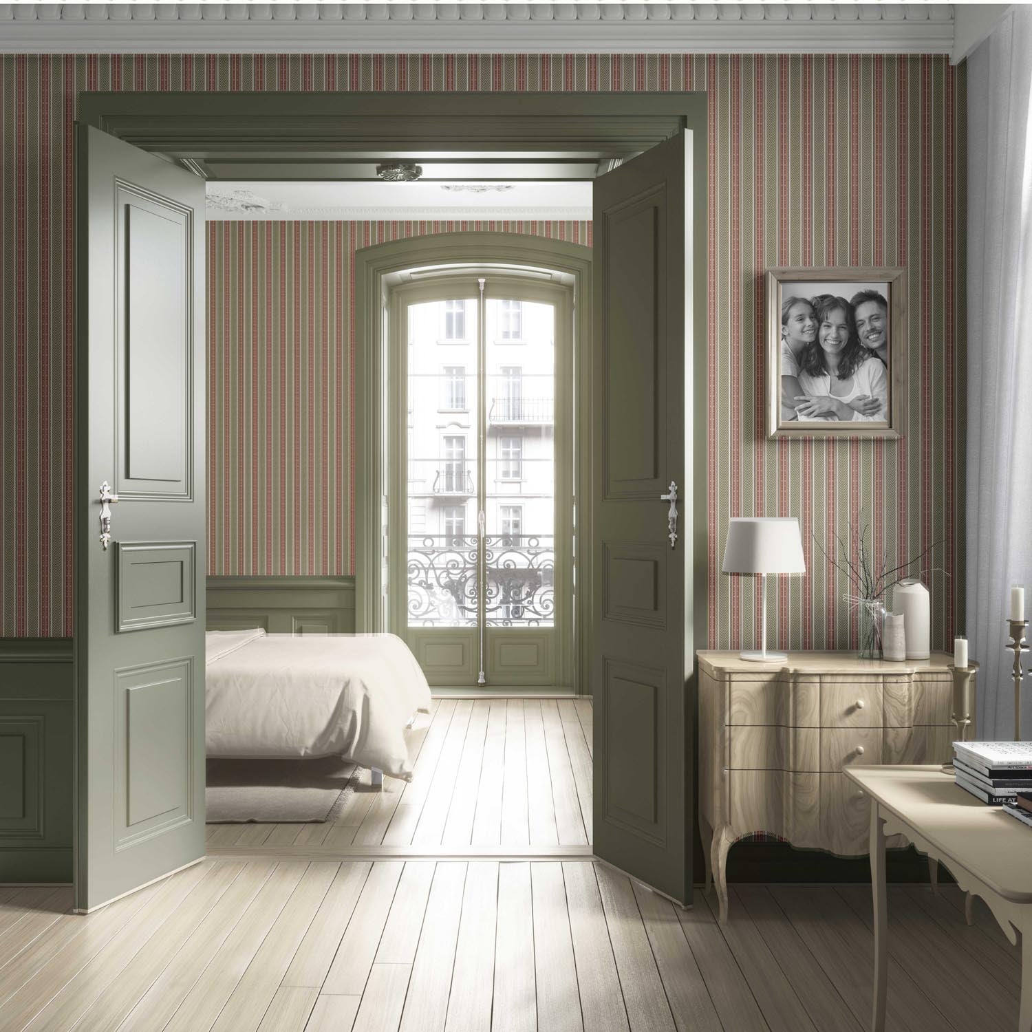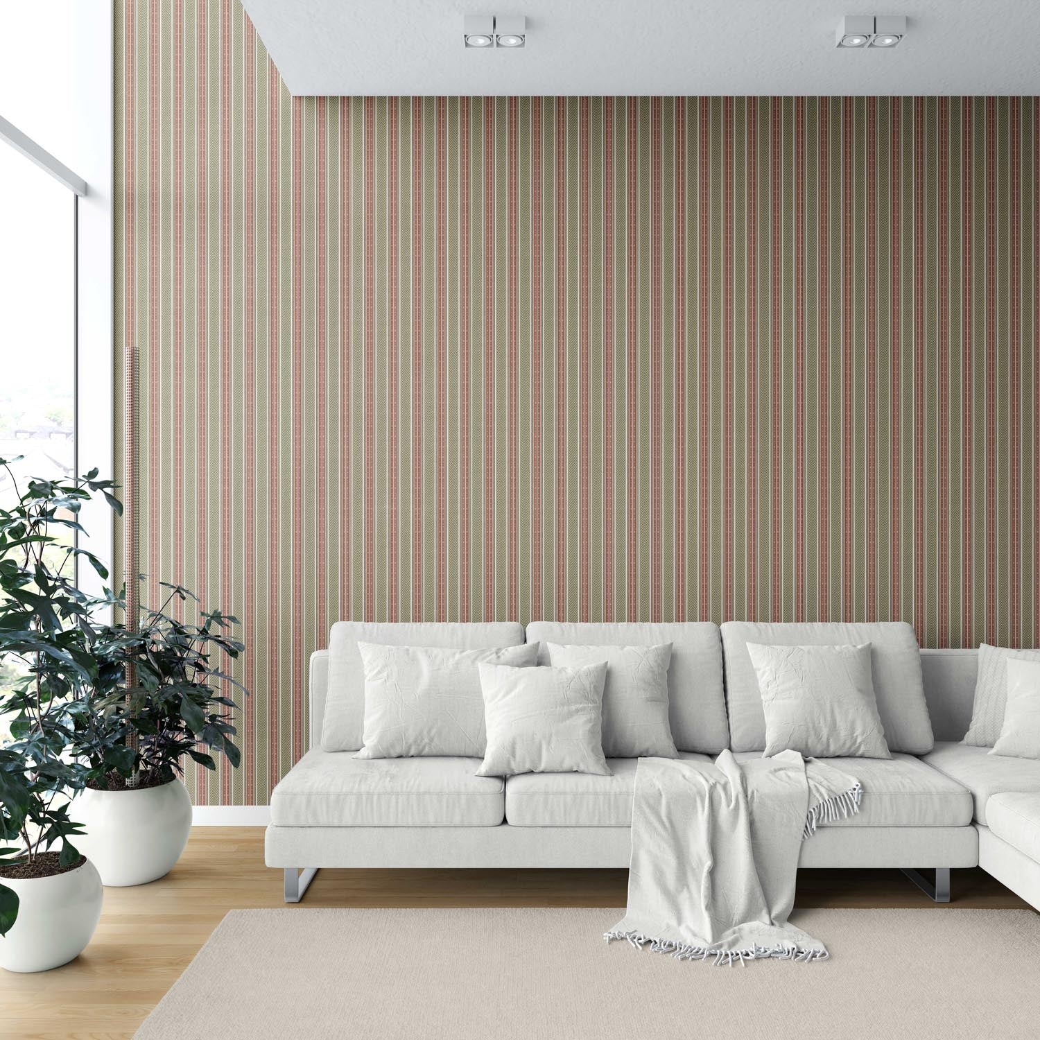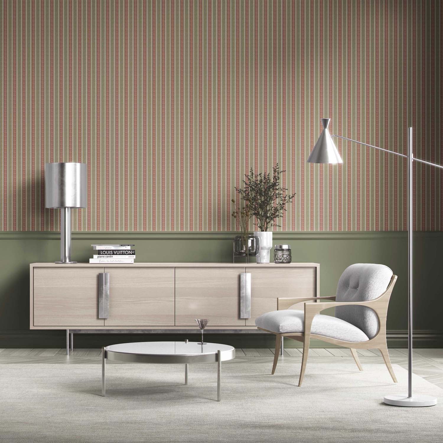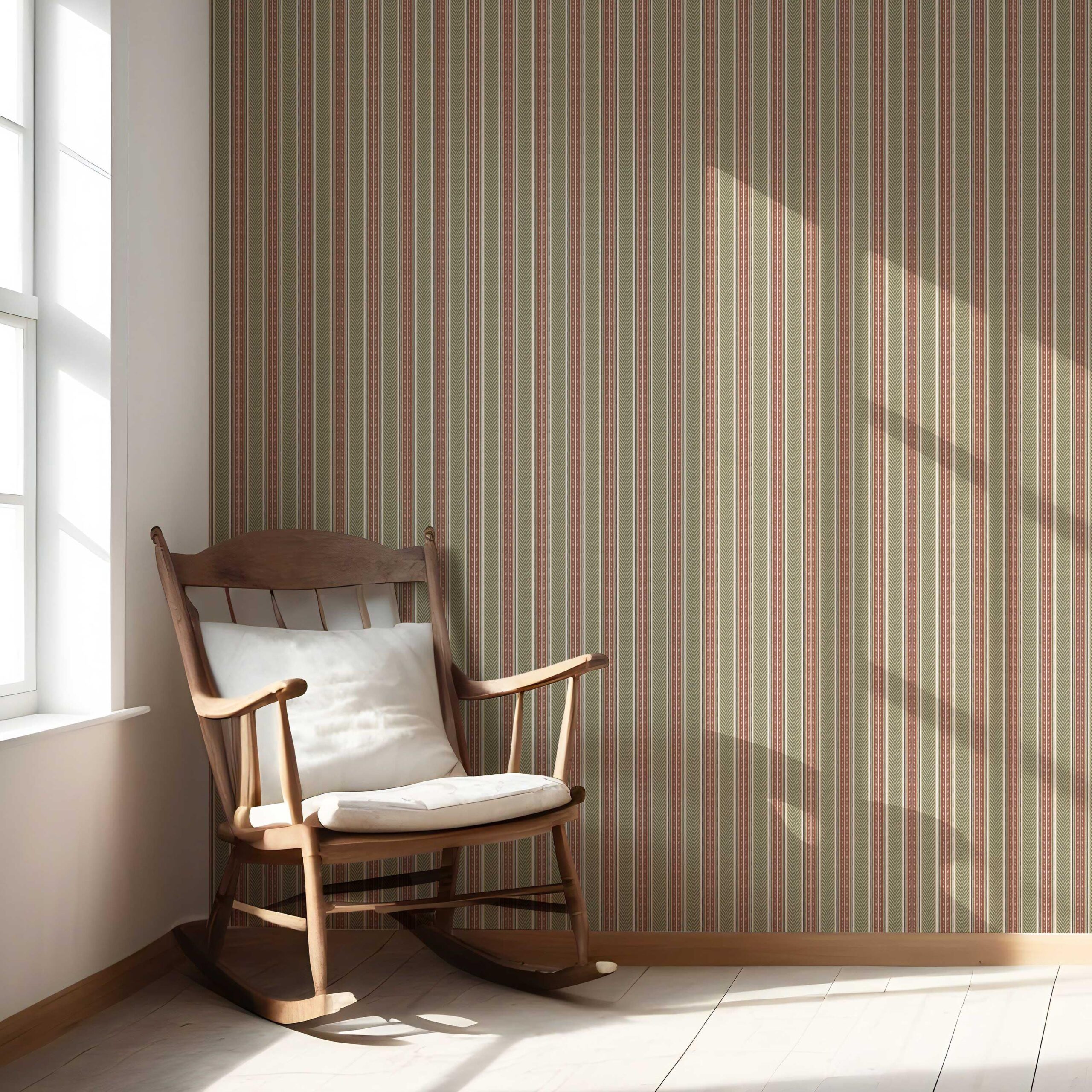 ‘Dornick’ Geometric Striped Wallpaper (Red/ Green)