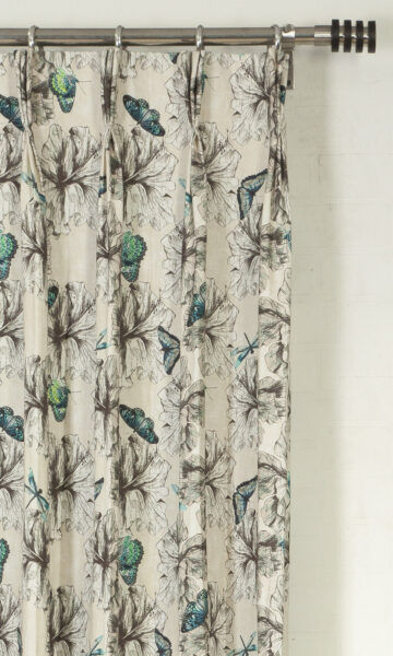 ‘Dragonfly Blue’ Butterfly Print Cotton Bespoke Curtains (Blue)