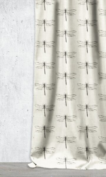 ‘Dragonfly Covey’ Dragonfly Print Bespoke Drapery (Black/ White)