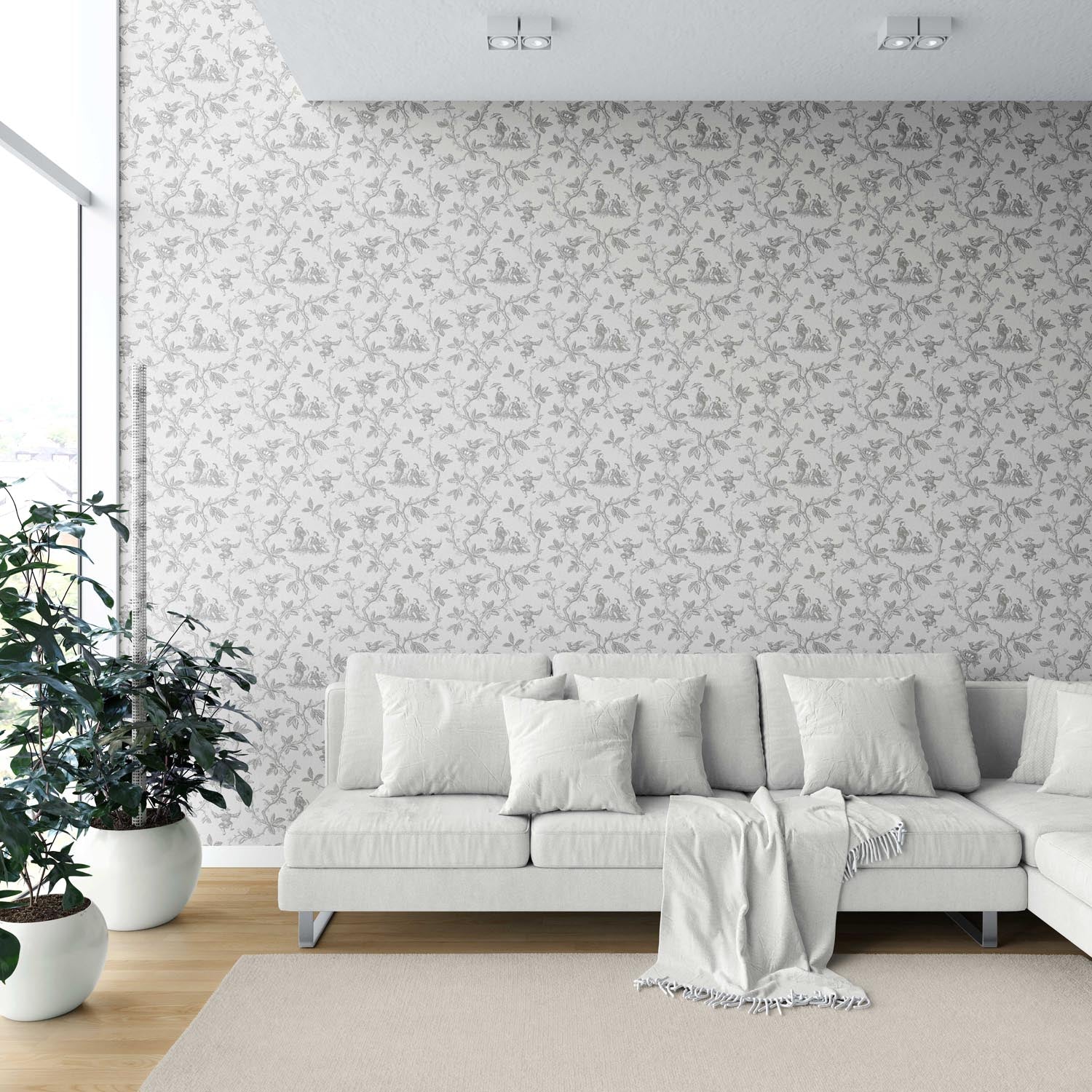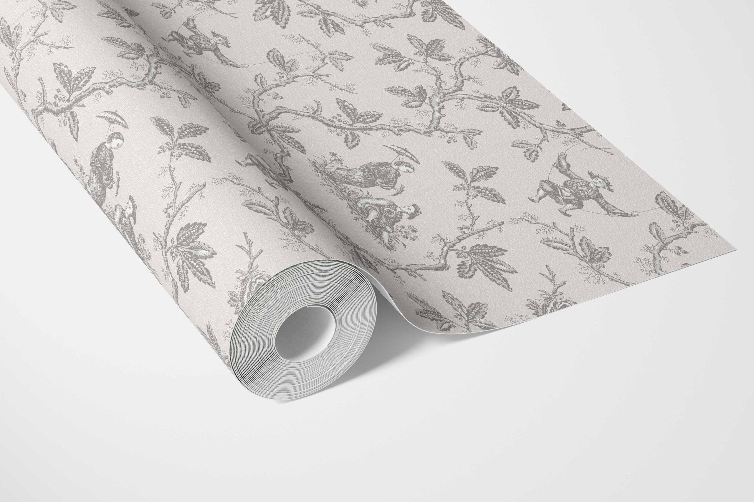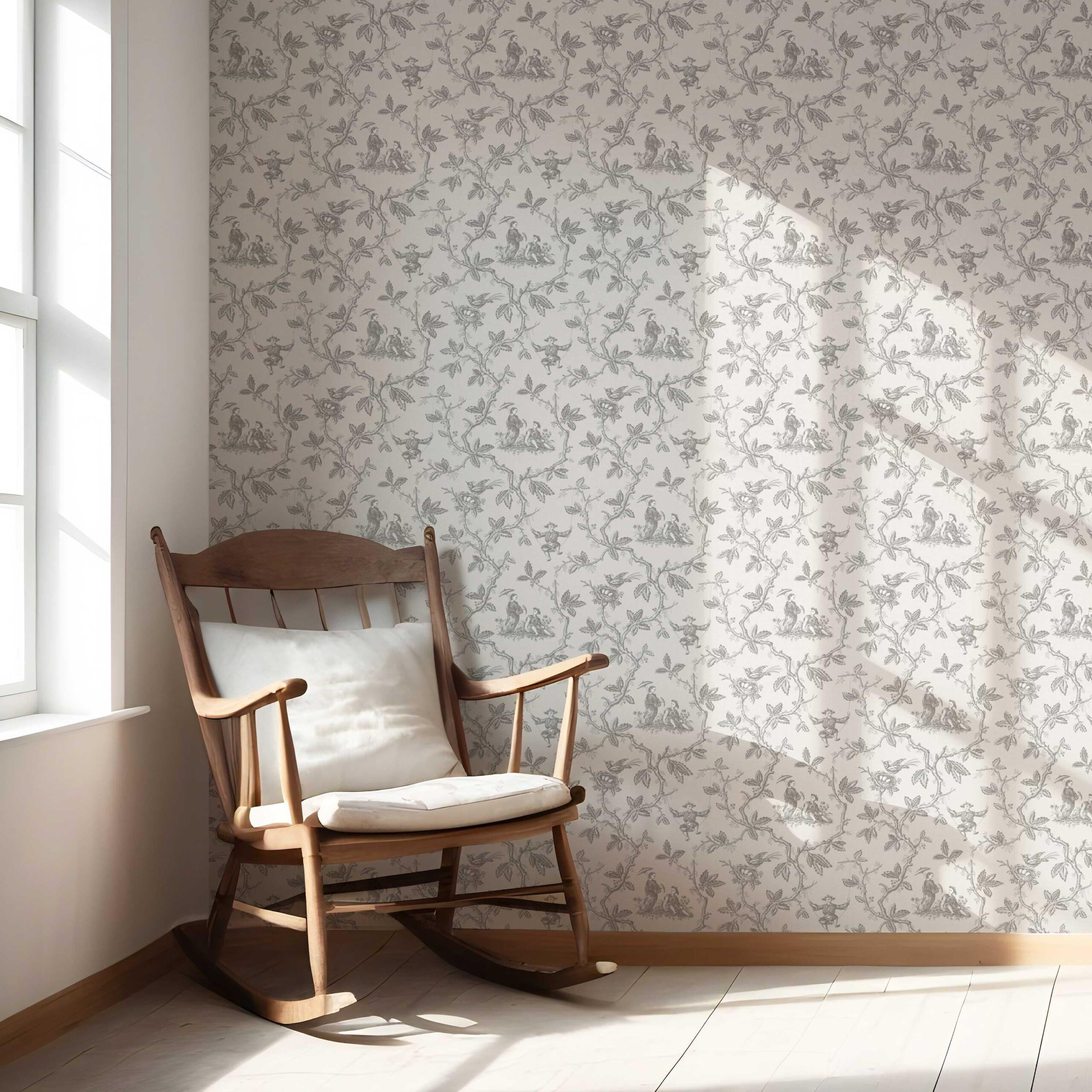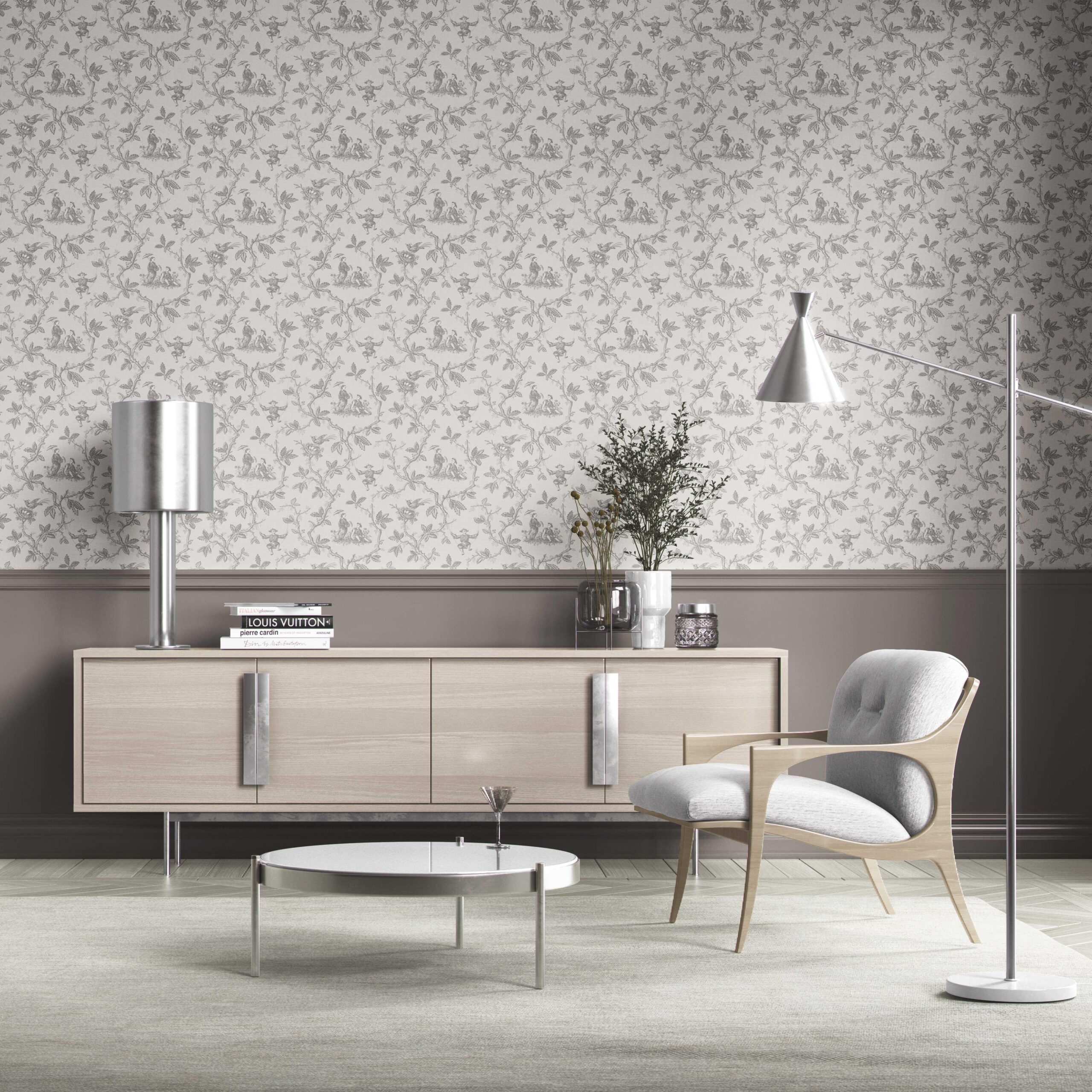 ‘Drips Dots’ Floral Toile de Jouy Wallpaper (Gray/ Off-White)