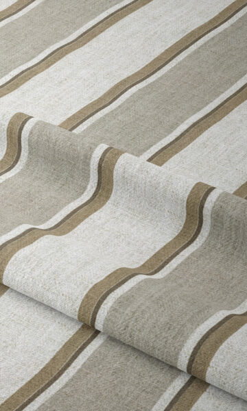 Designed with classic regency stripes in a soft color scheme of brown, greige and white, this fabric breathes simplicity and country vibes. The attention-raking scale of the pattern is complemented by an impressively calming palette. Elongate your space with elegant drapes and shades in this vertical striped fabric which can easily blend with any decor style.