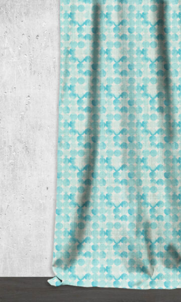 Strewn with repeating circular shapes, this cheerful flatweave fabric will add geo-flair to your decor, making it an ideal choice for contemporary, mid-century, or modern decorative plans. Its oceanic hues of turquoise blue, eggshell, and buff will infuse your living room, bedroom, or den with serene styling.