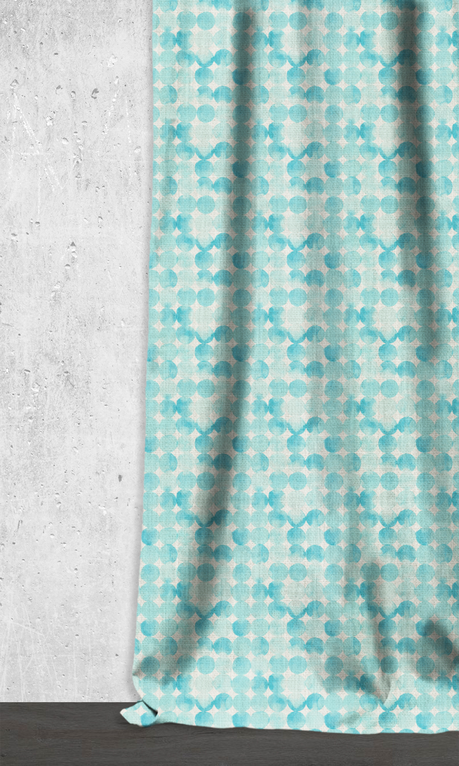 ‘Echo Beach’ Polka Dots Custom Drapes (White/ Turquoise)